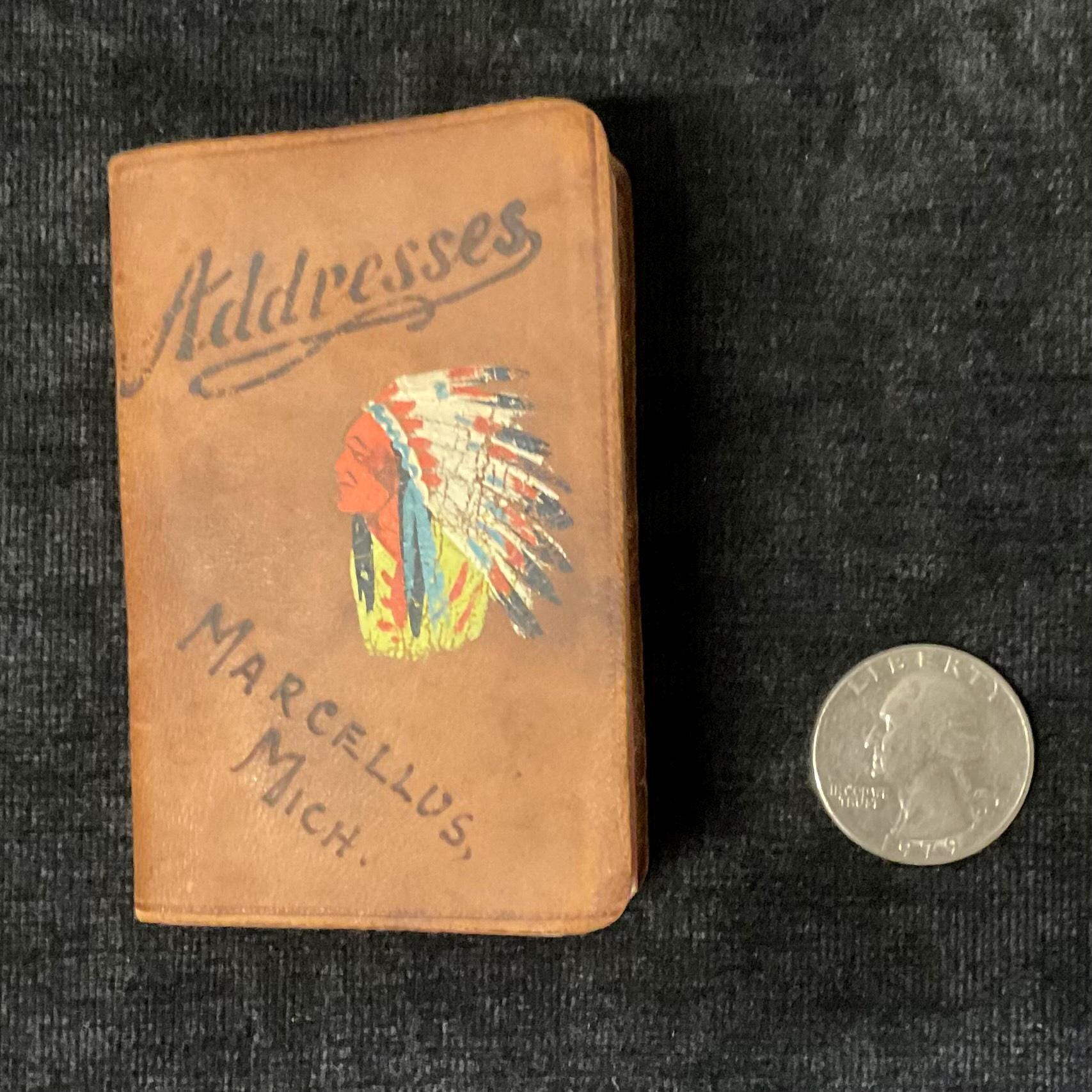 Mini Address Book Made by Indigenous People in Marcellus, Michigan -1930s Souvenir - Native American Made Leather Covered Book