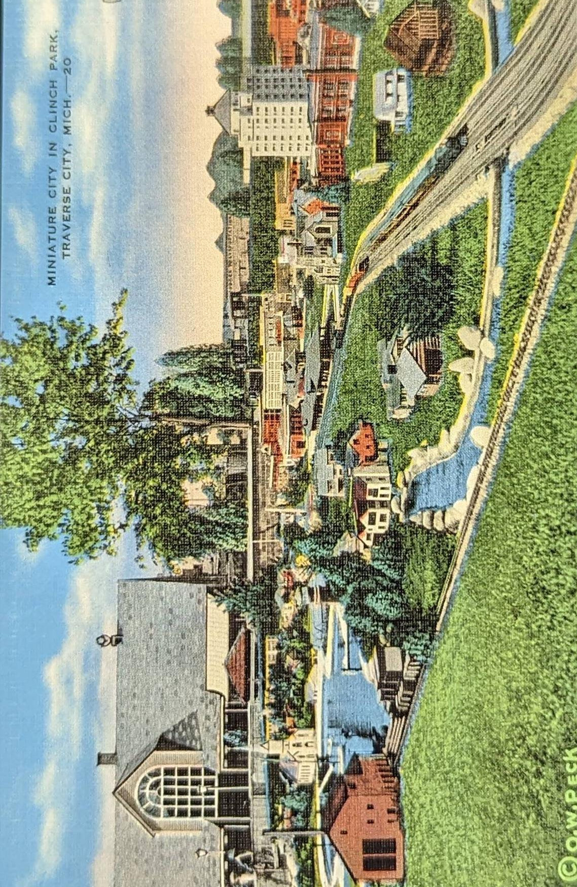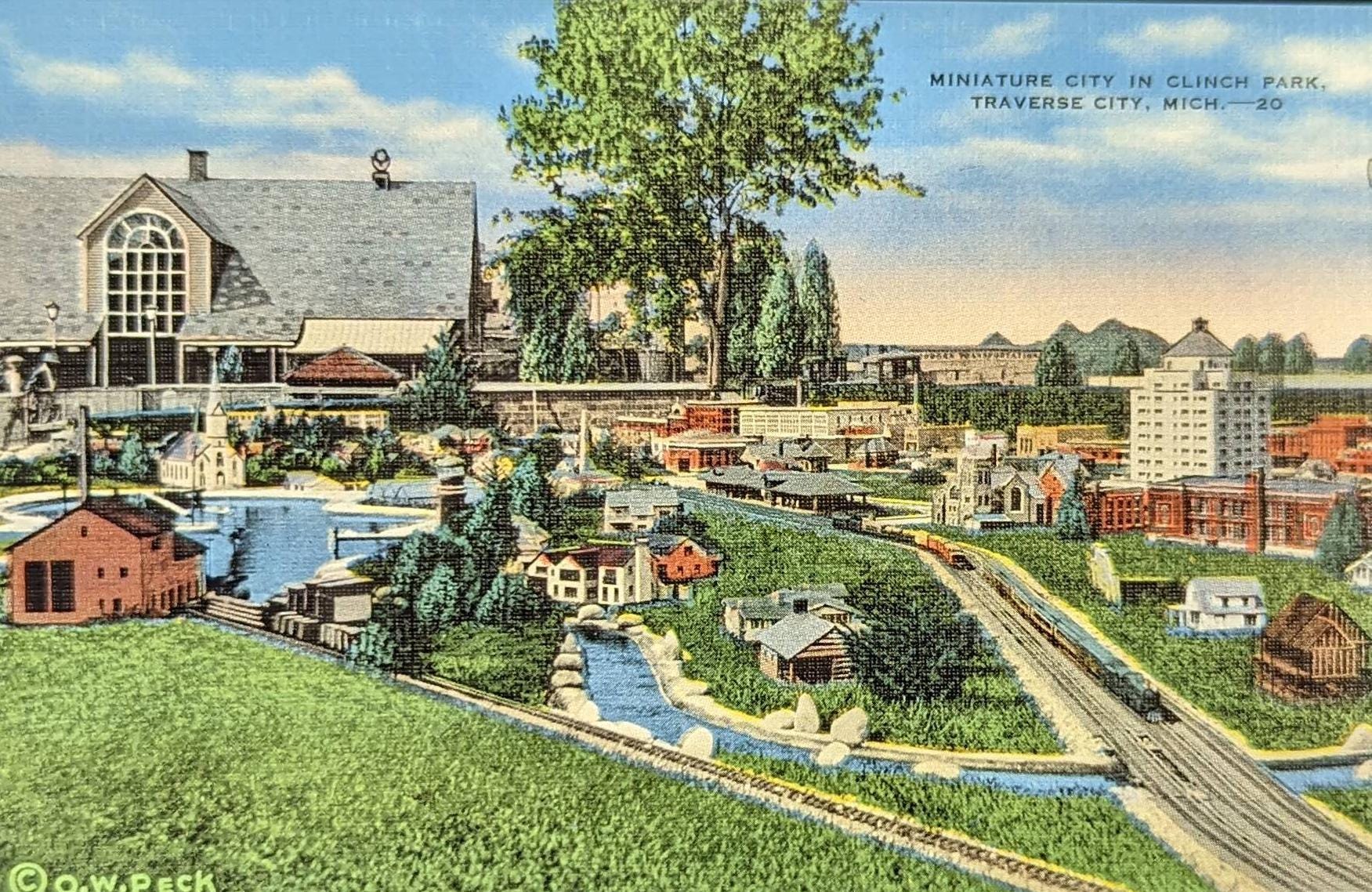 Miniature City - Clinch Park - Traverse City, Michigan - 1940s Linen Postcard