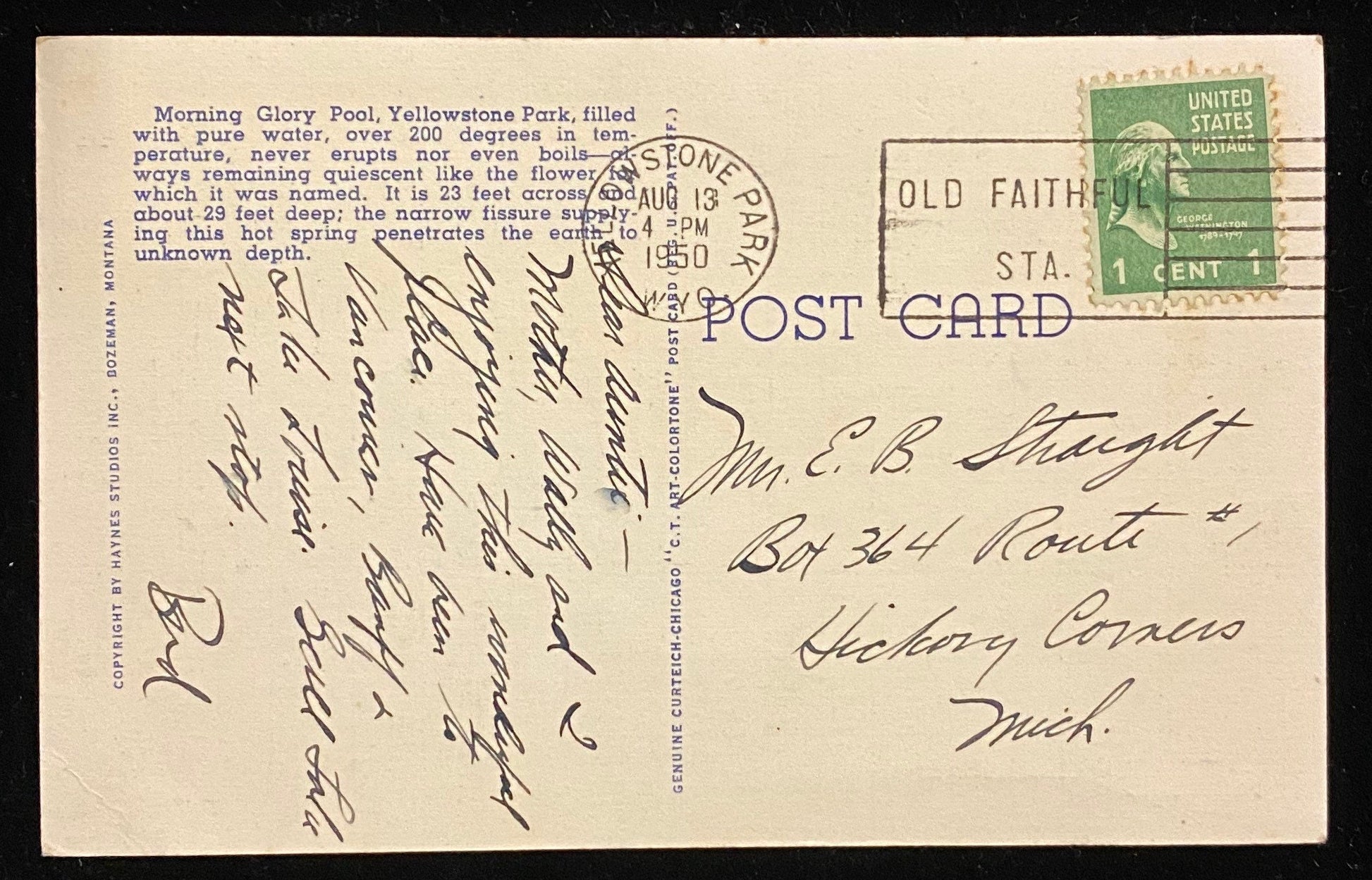 Morning Glory Pool, Yellowstone National Park, Wyoming - Vintage Postcard
