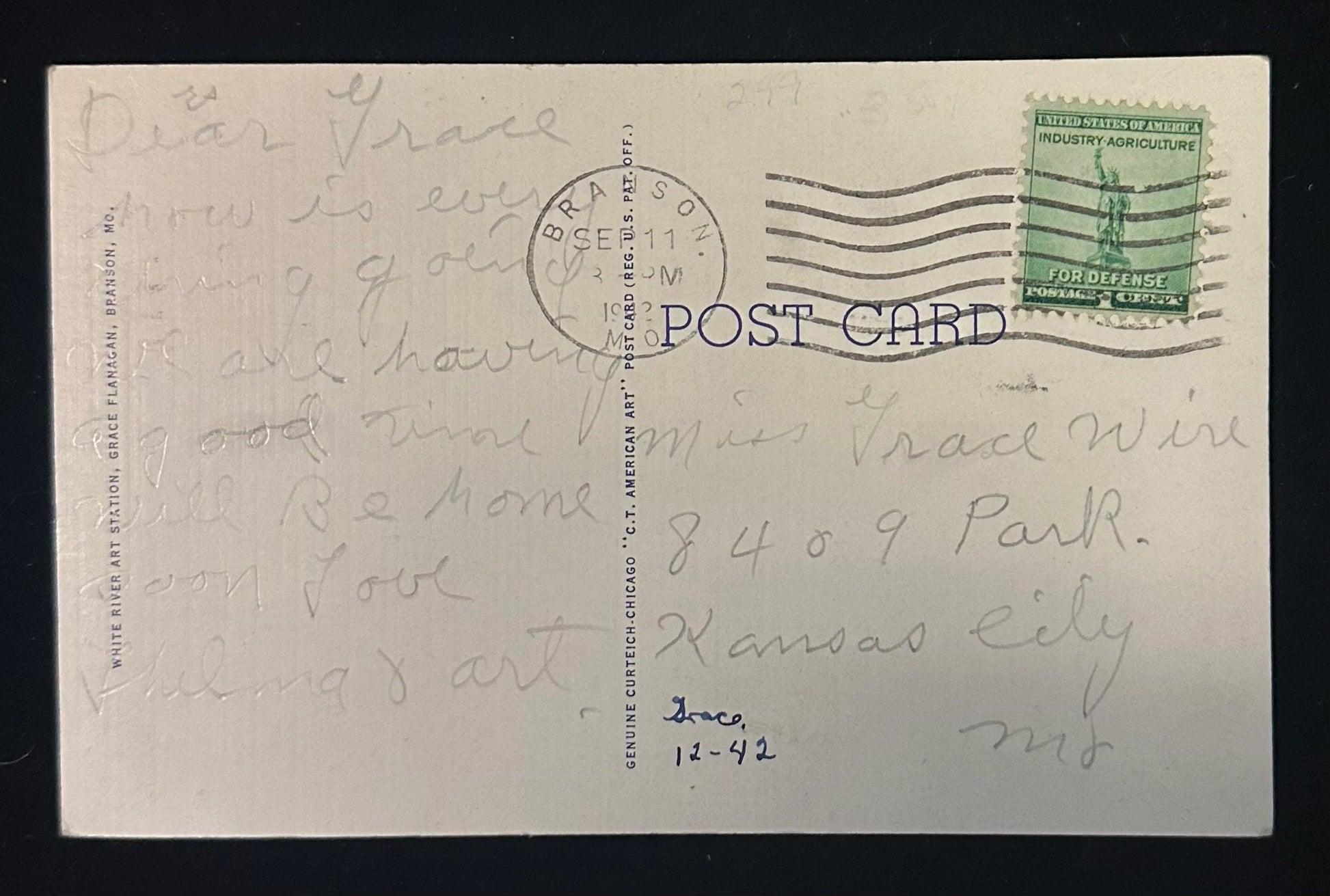 Mailed- Posted on September 11th, 1942 from Branson, Missouri with a Green Lady Liberty 1 cent stamp