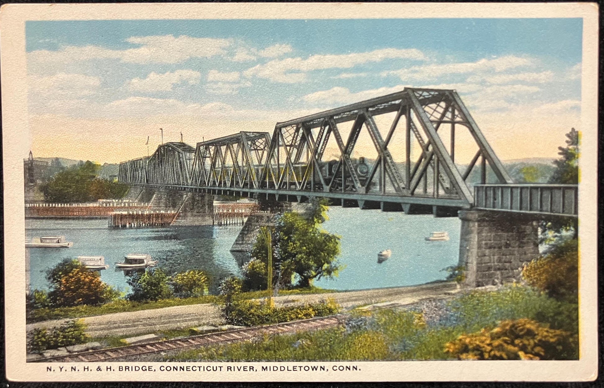 N. Y. N. H. & H. Bridge - Connecticut River, Middletown, Conn. - Vintage Bridge Postcard