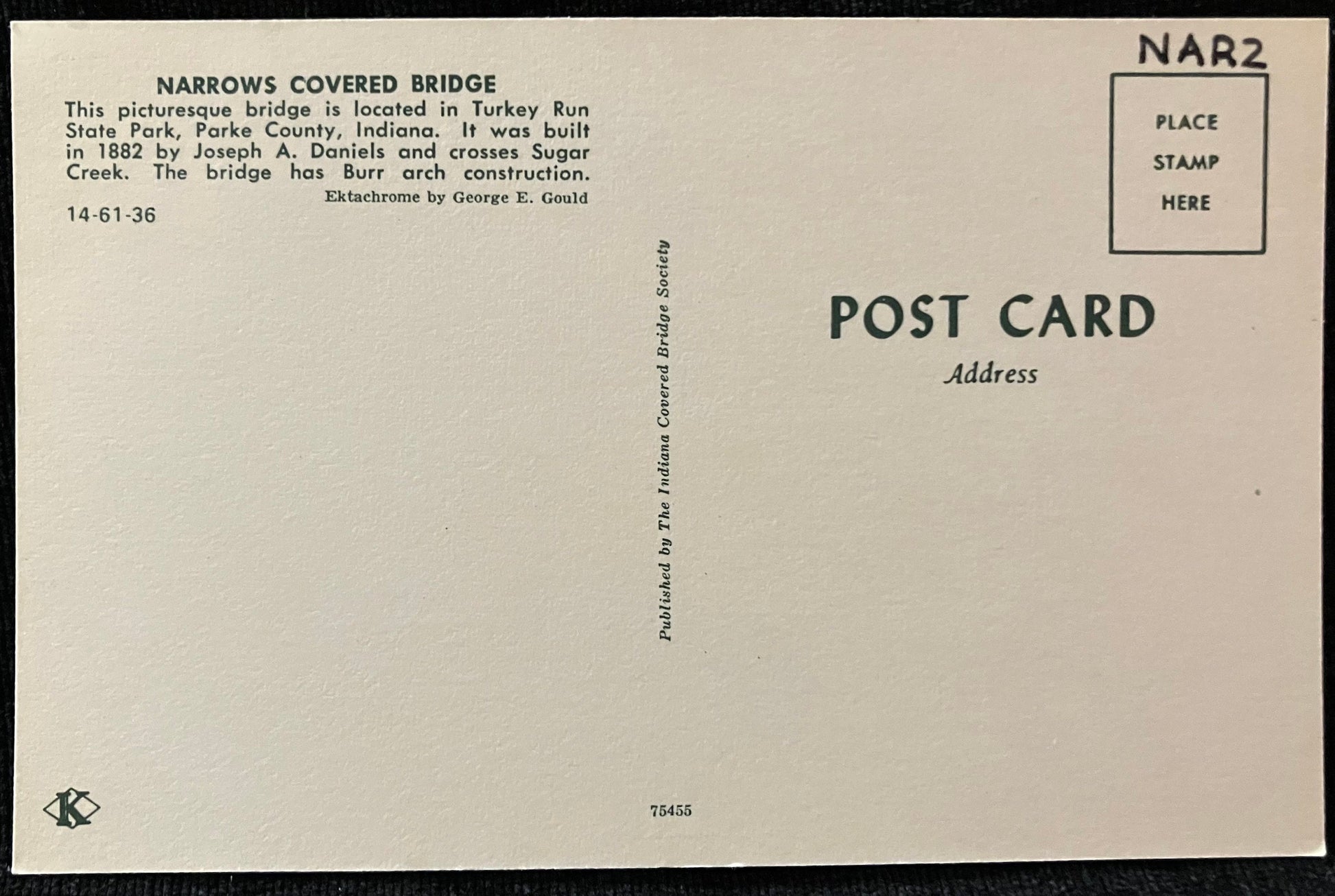 Narrows Covered Bridge in Parke County, Indiana - Photo by George Gould - Vintage Covered Bridge Postcard