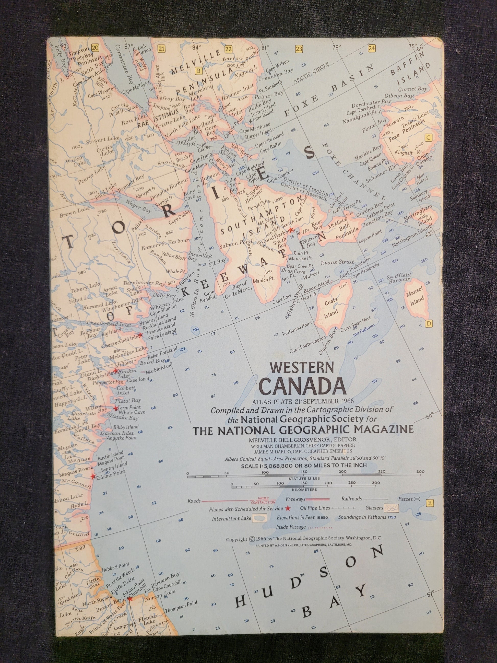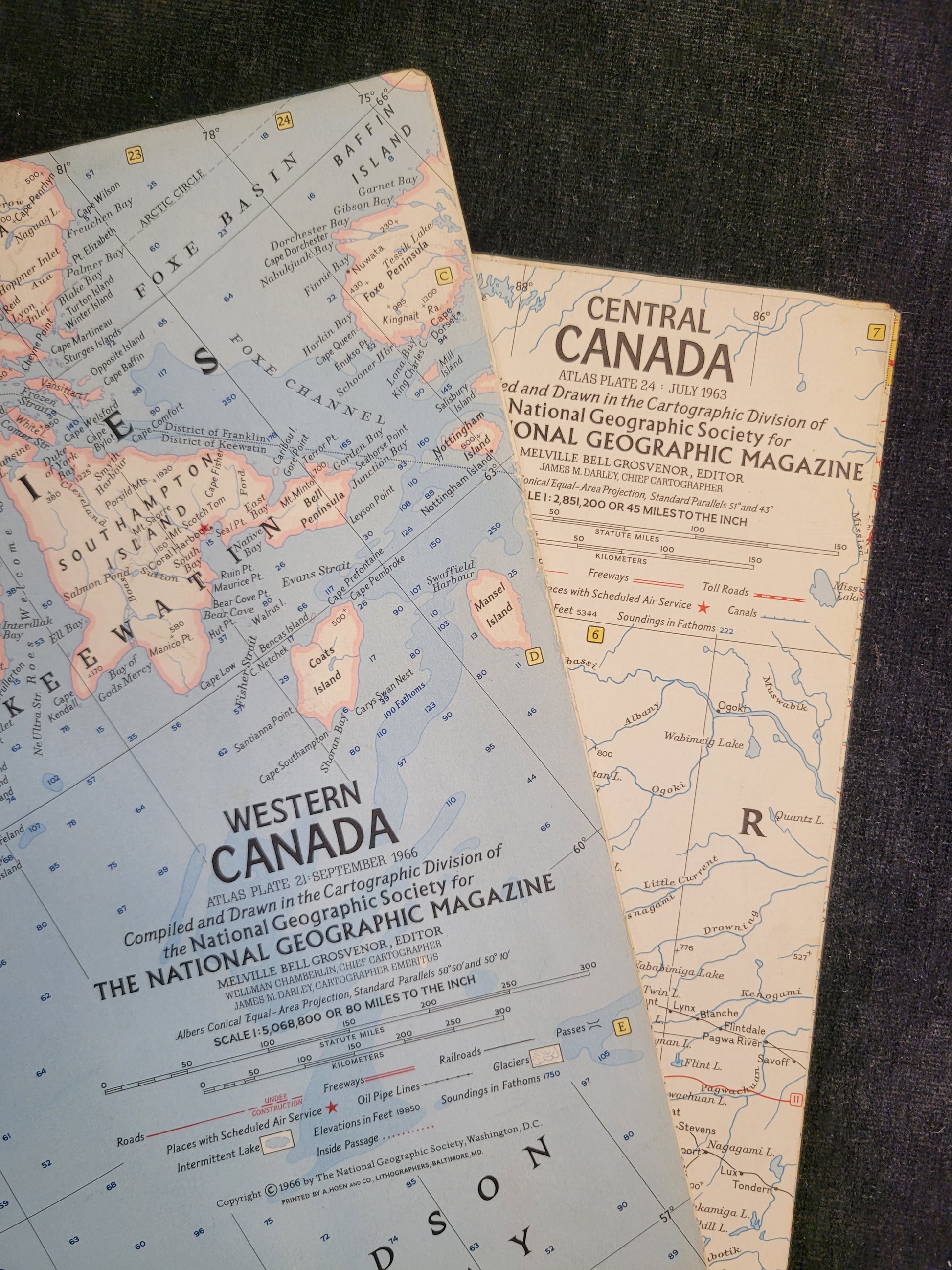 1960s National Geographic World Maps of Canada - Sold individually - Central Canada - Western Canada