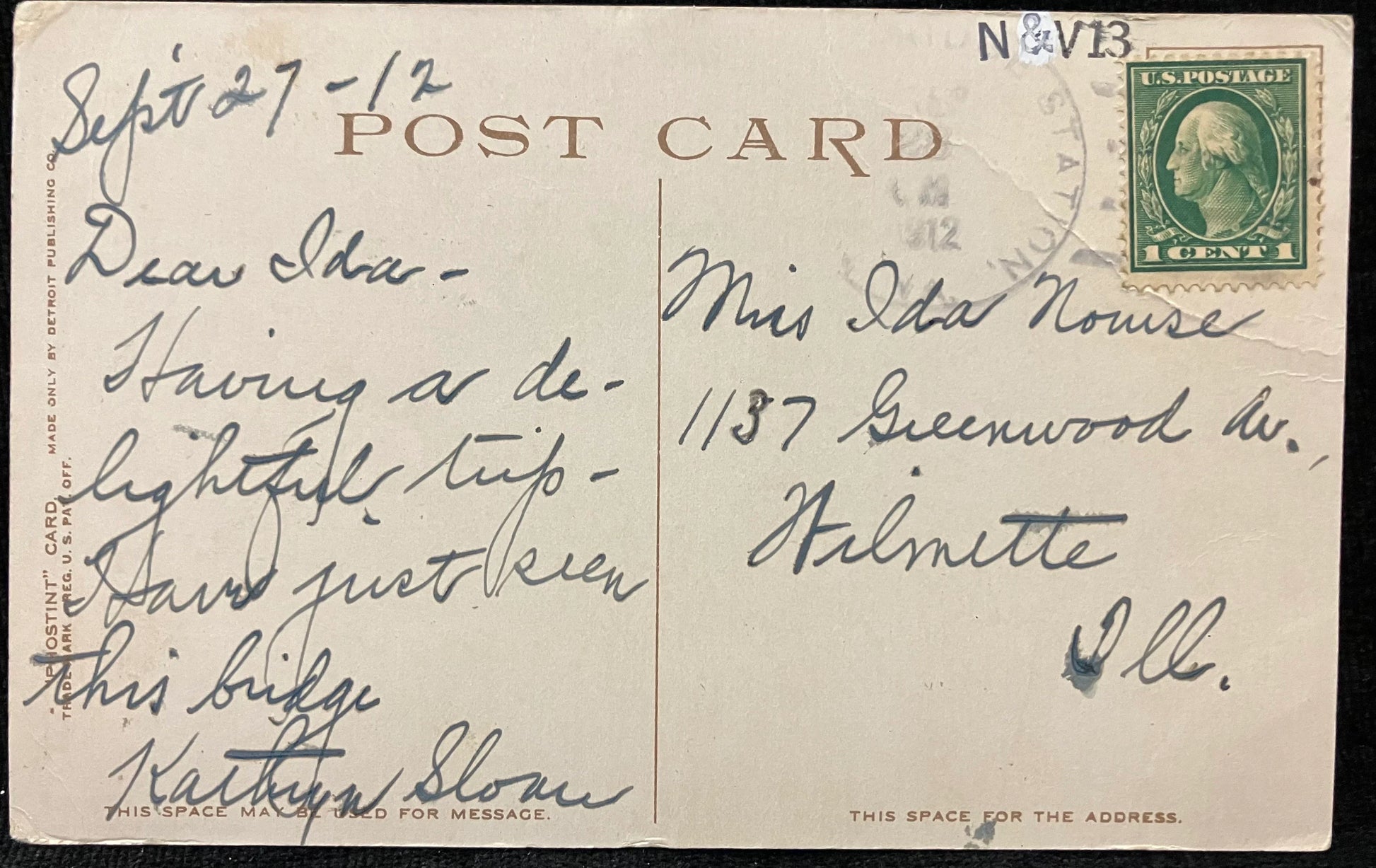 Mailed: Postmark in 1912 from VA with a green one cent George Washington stamp