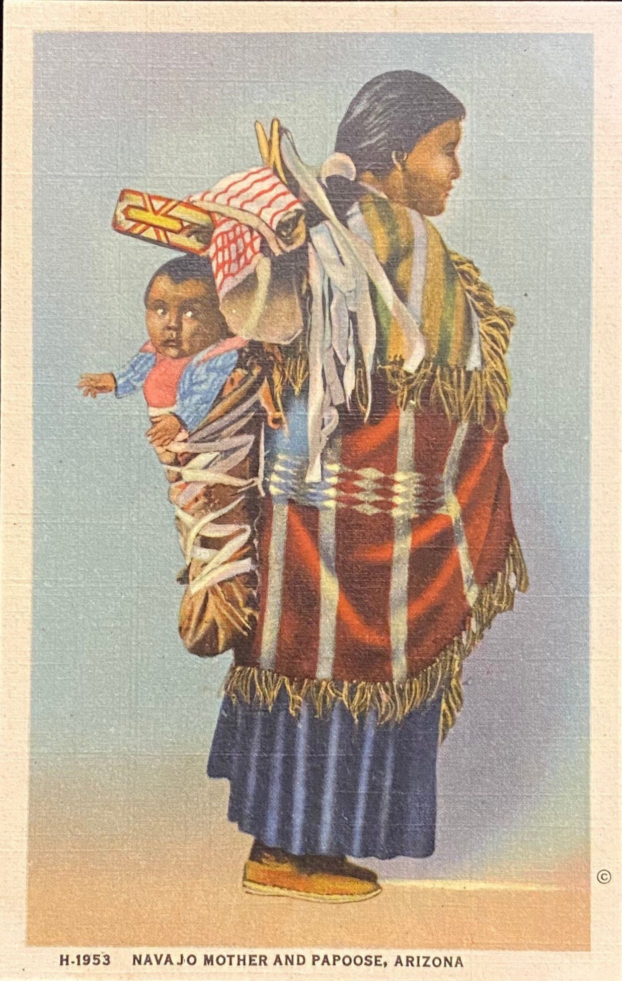 Navajo Mother and Papoose, Arizona - 1937 Linen Postcard