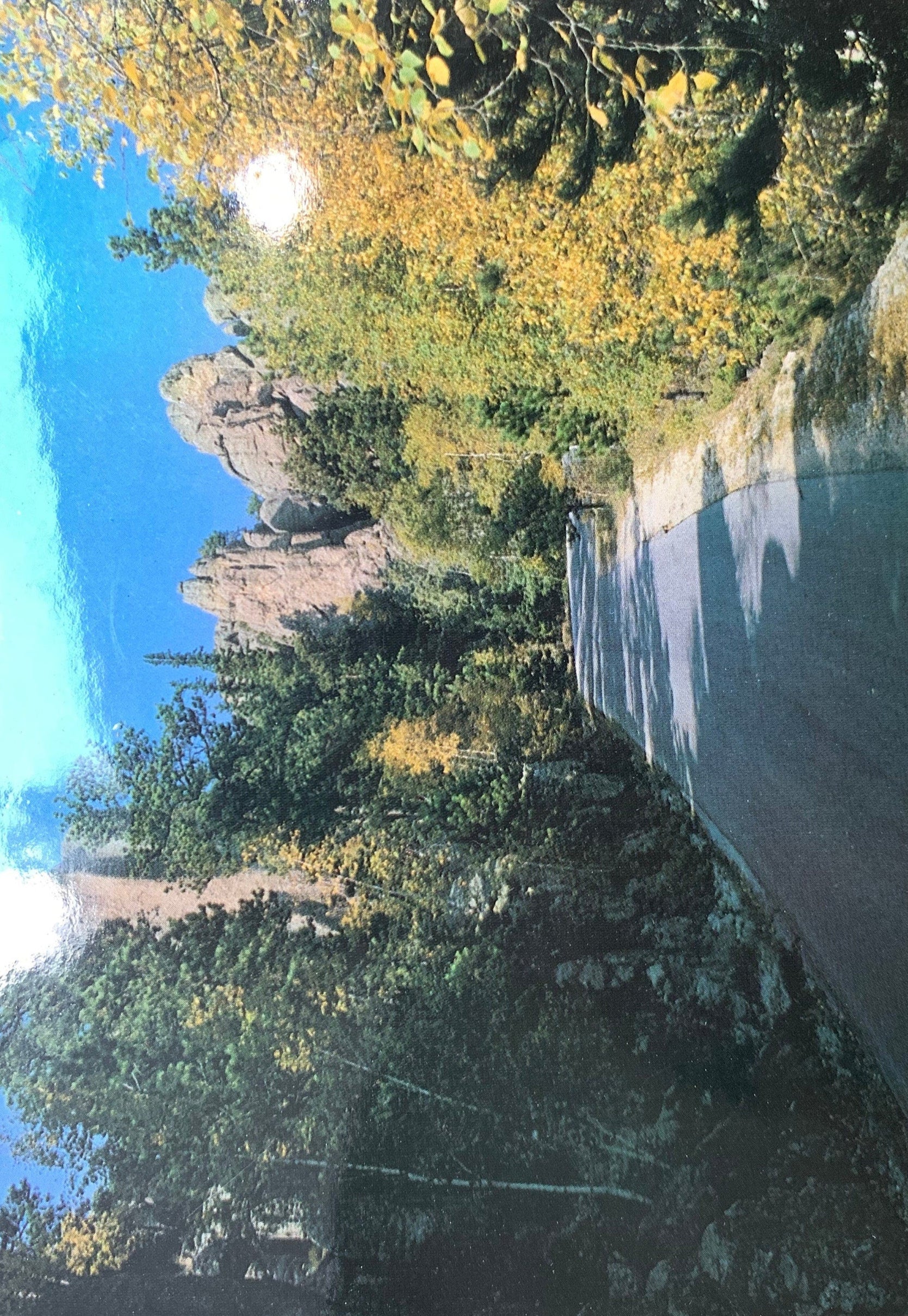 Back Text: "Autumn's paint brush colors the Needles Highway, in the Black Hill of South Dakota, in soft pastels.