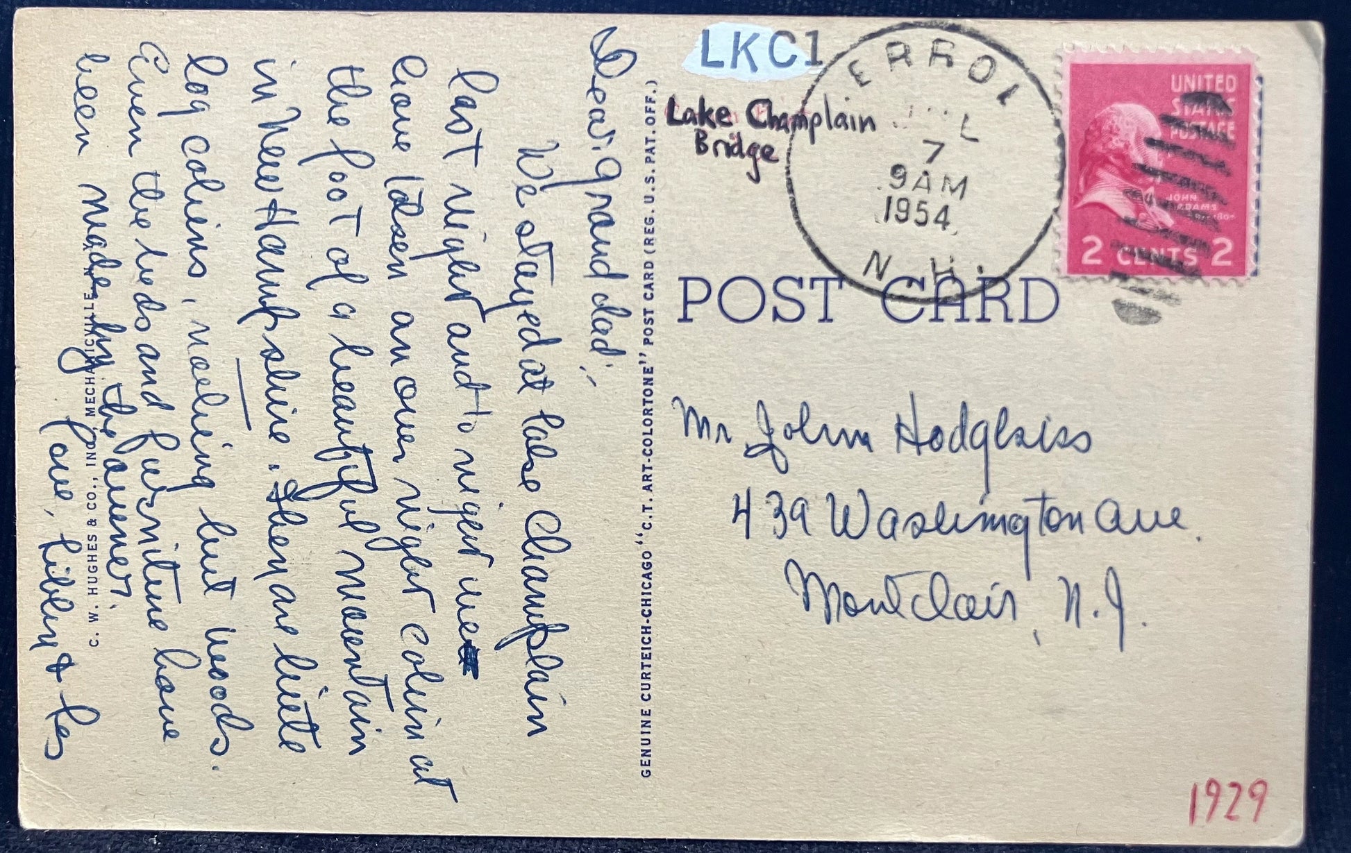 Mailed: Postmark on July 7, 1954 from Errol, N. H.