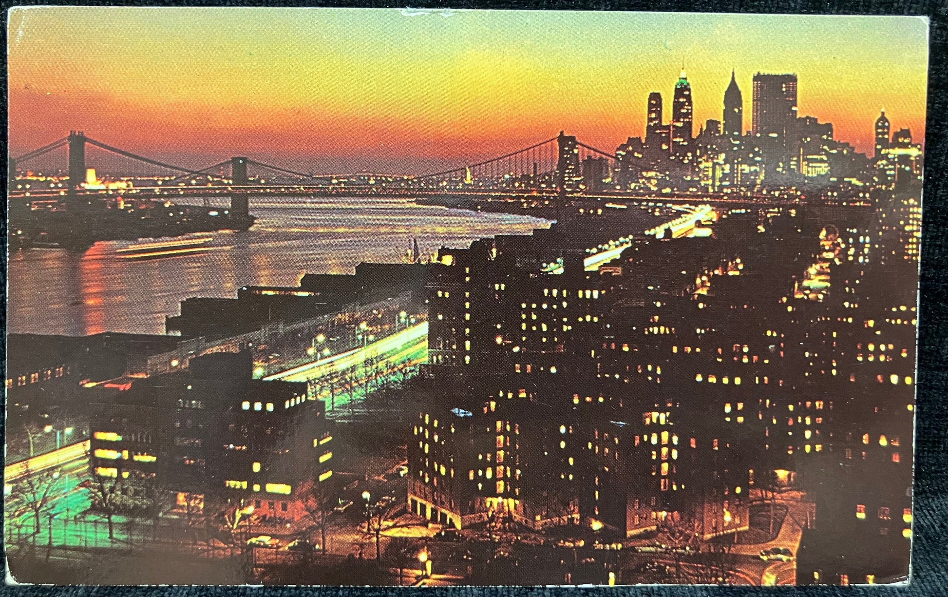 New York City by Night - Sunset on the East River, NY - Vintage Postcard