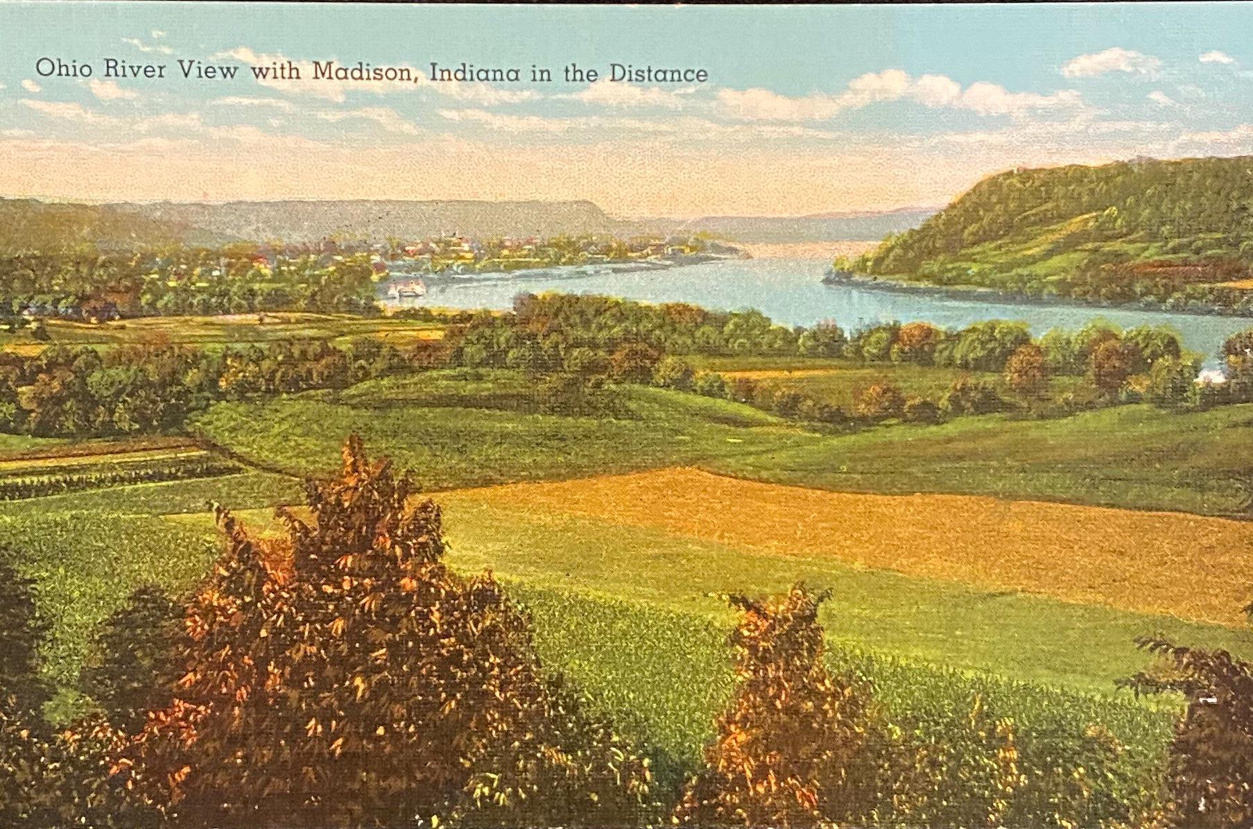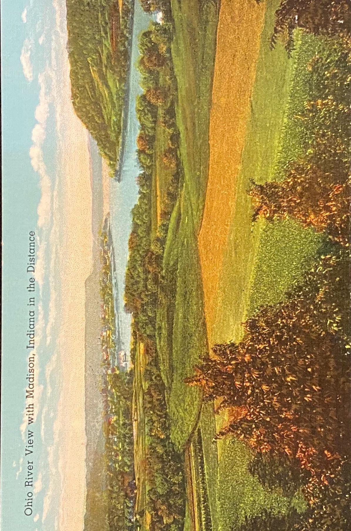 Ohio River View - Madison, Indiana - 1940s Linen Postcard