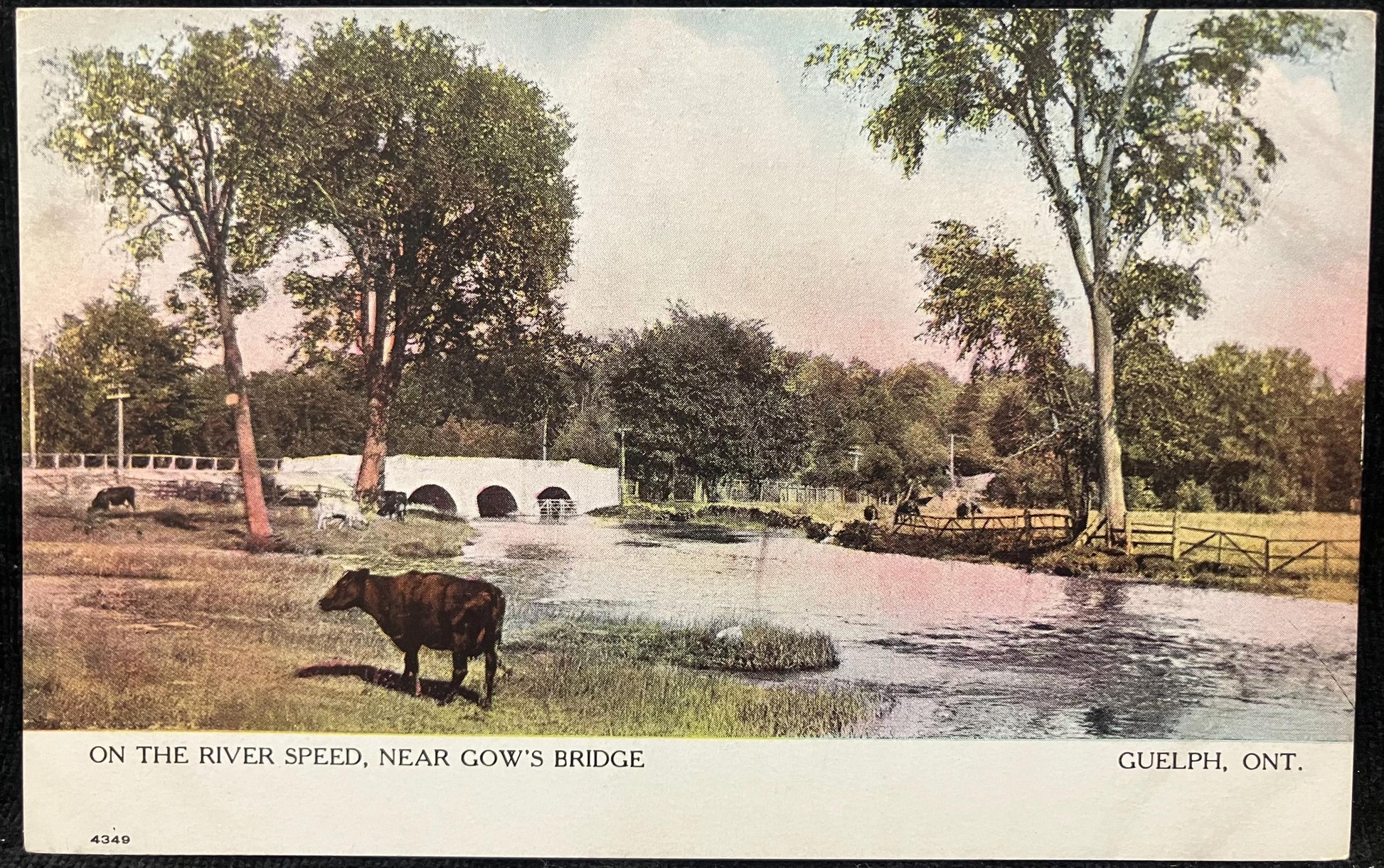 On the River Speed - Gow's Bridge - Guelph, Ont. - Printed in Canada - 1910 Bridge Postcard