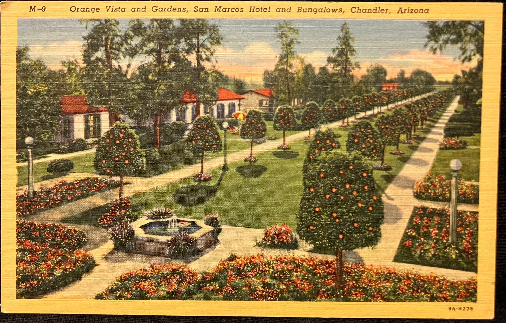 Orange Vista and Gardens - San Marcos Hotel and Bungalows - Chandler, Arizona - 1940s Linen Postcard