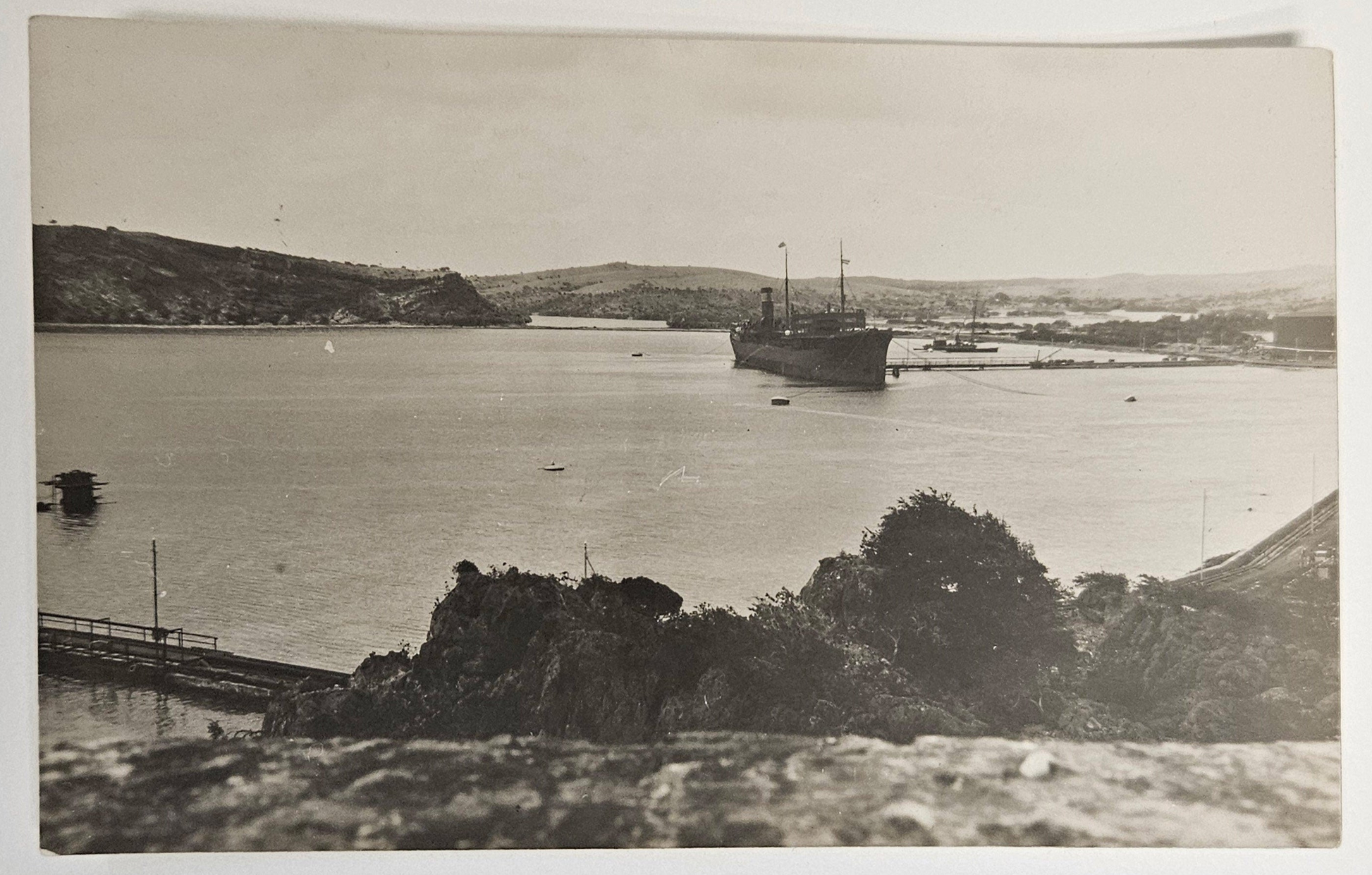 Photo Of Large Battle Ship Entering a Valley Harbor - 1930 to 1940