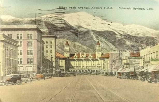 Pikes Peak Avenue - Antlers Hotel - Colorado Springs, Colorado - 1920s Postcard