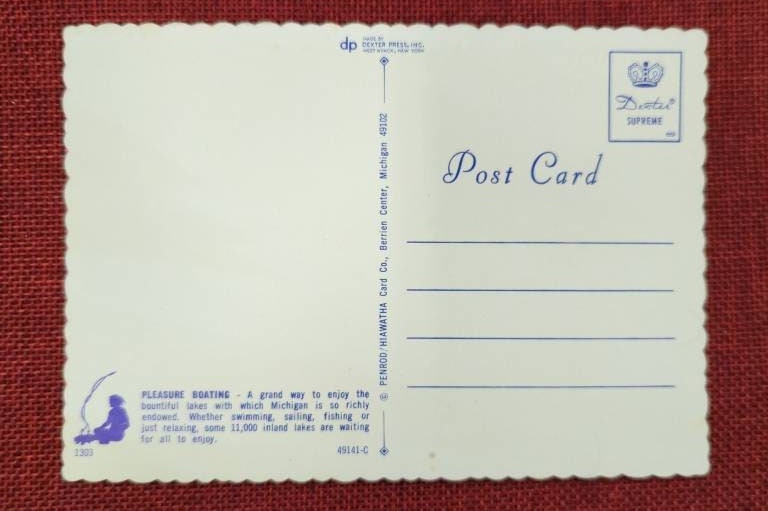 This vintage postcard shows a beautiful view over the lake in Michigan. It was produced by Penrod/Hiawatha and credits the photo to John Penrod. It was never sent and is in great condition.