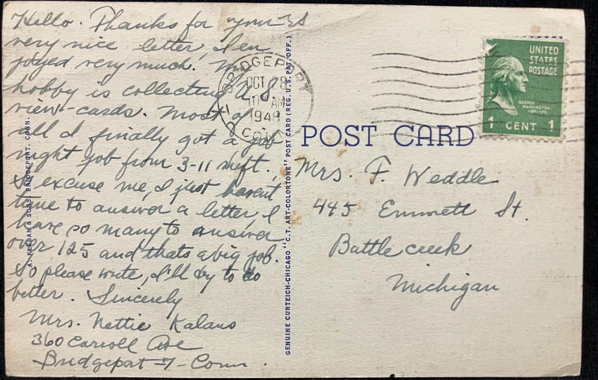 Mailed: Postmark: 1948 green one cent George Washington stamp