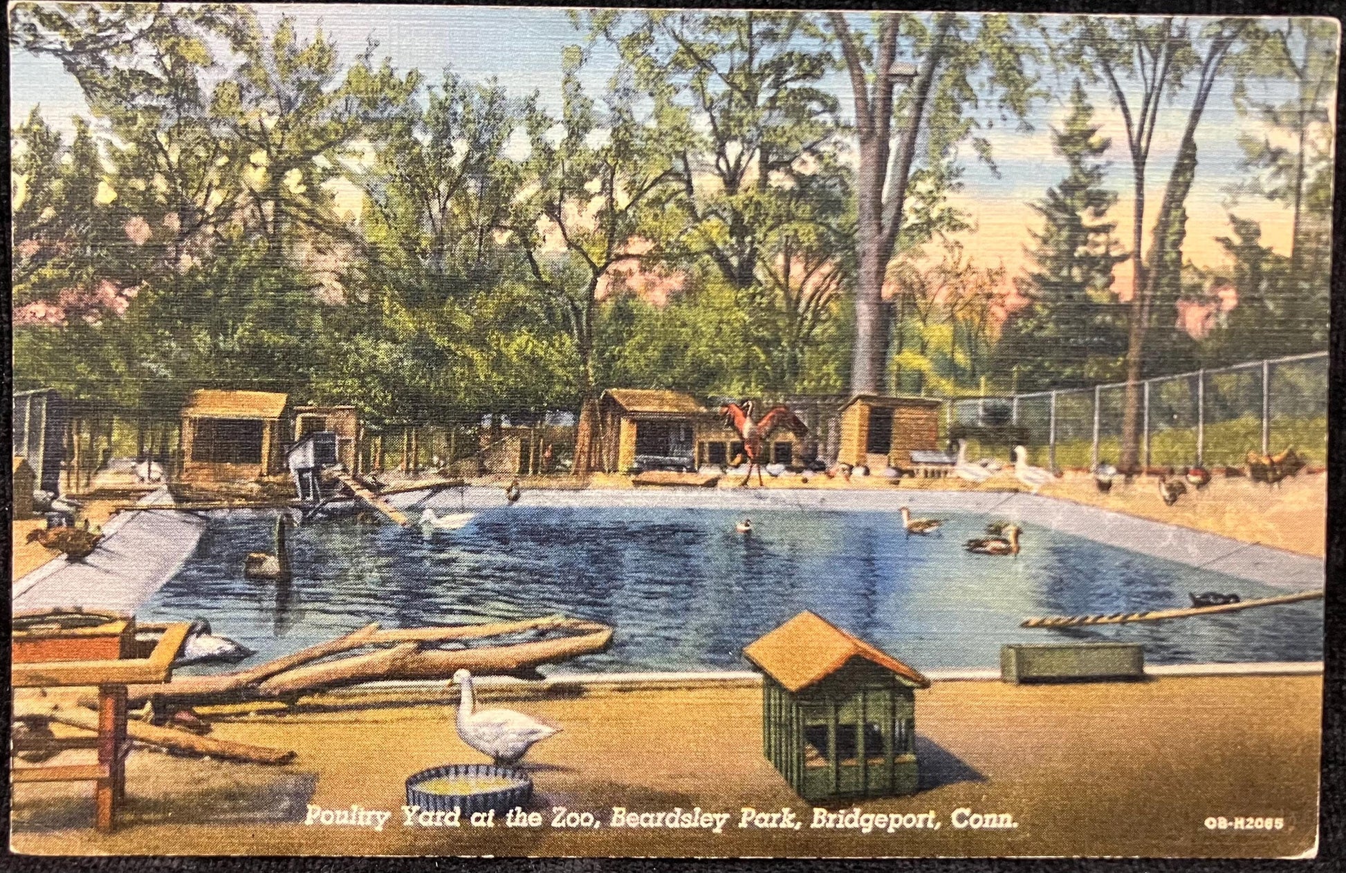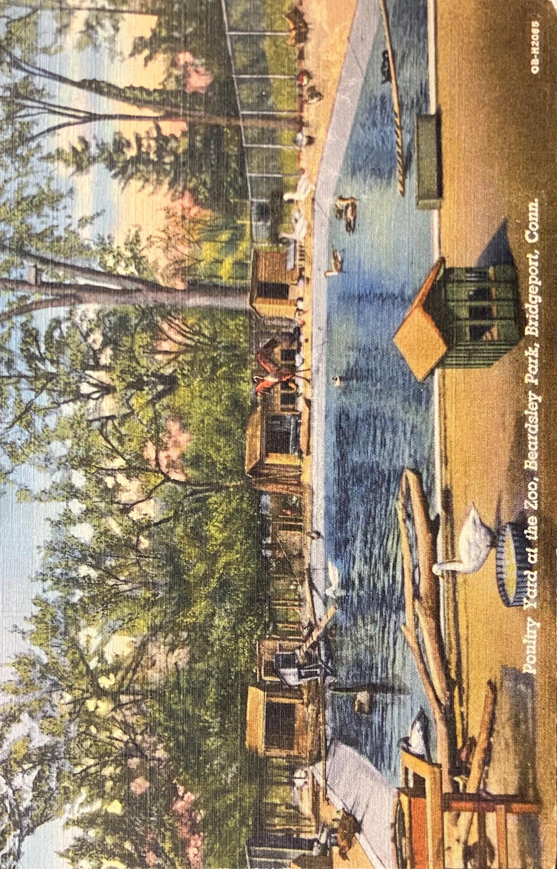 Poultry Yard at the Zoo, Beardsley Park, Bridgeport, Connecticut - 1940s Linen Postcard