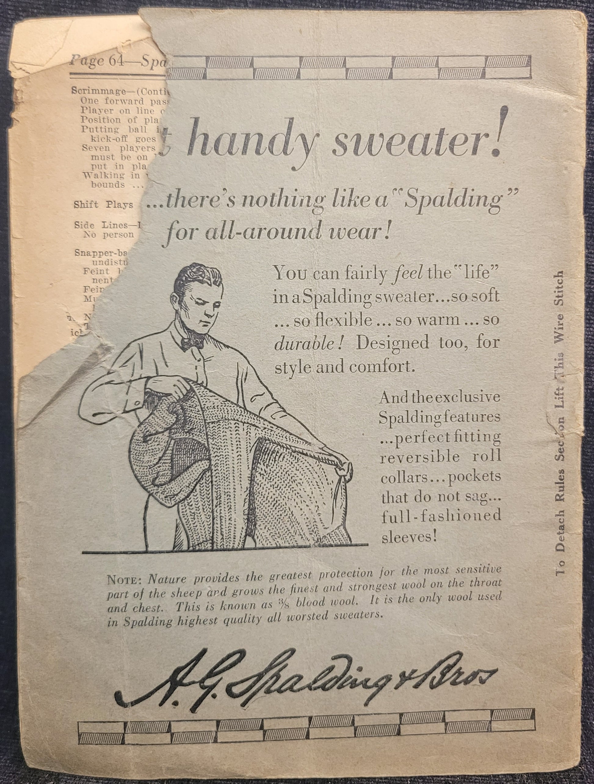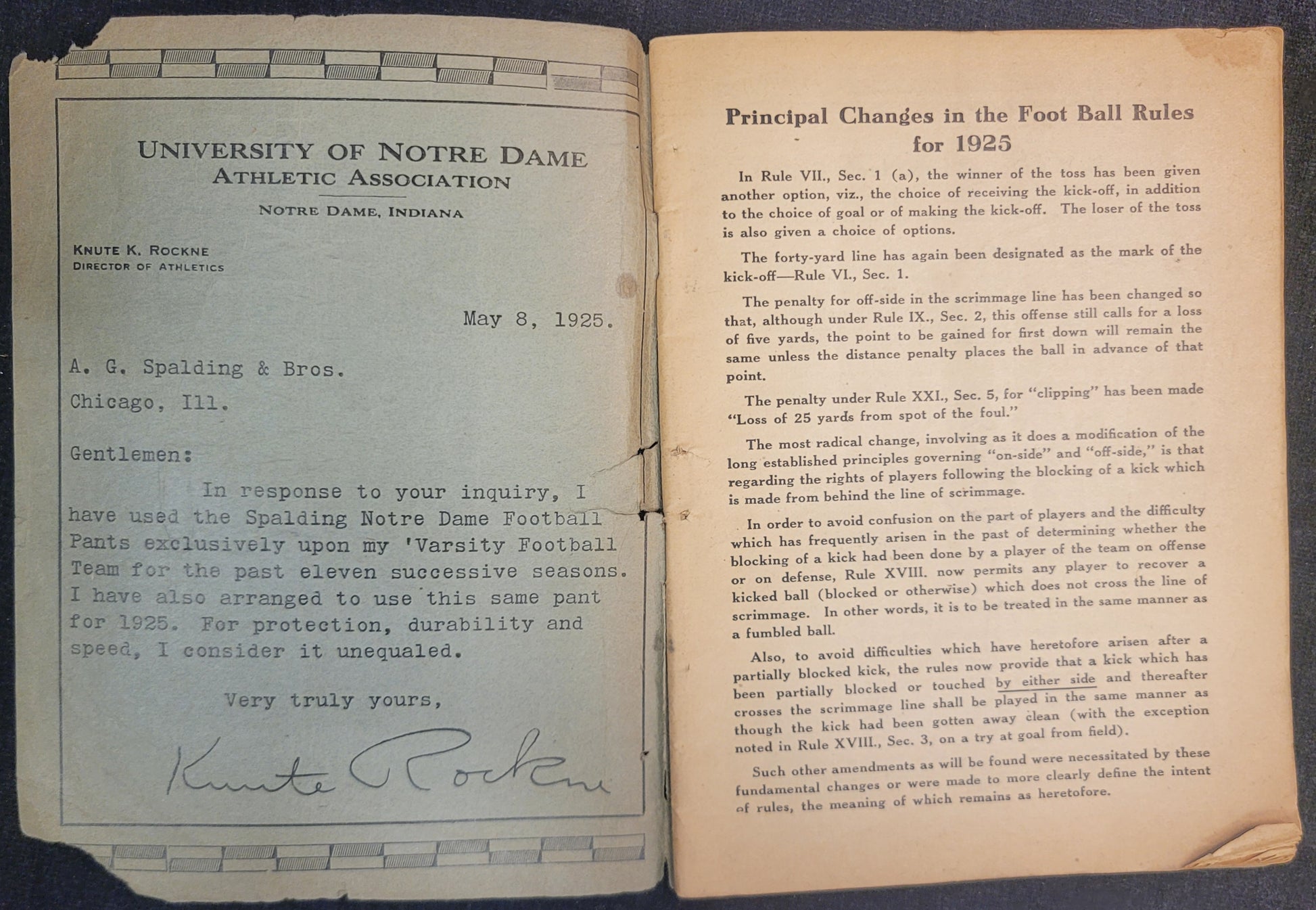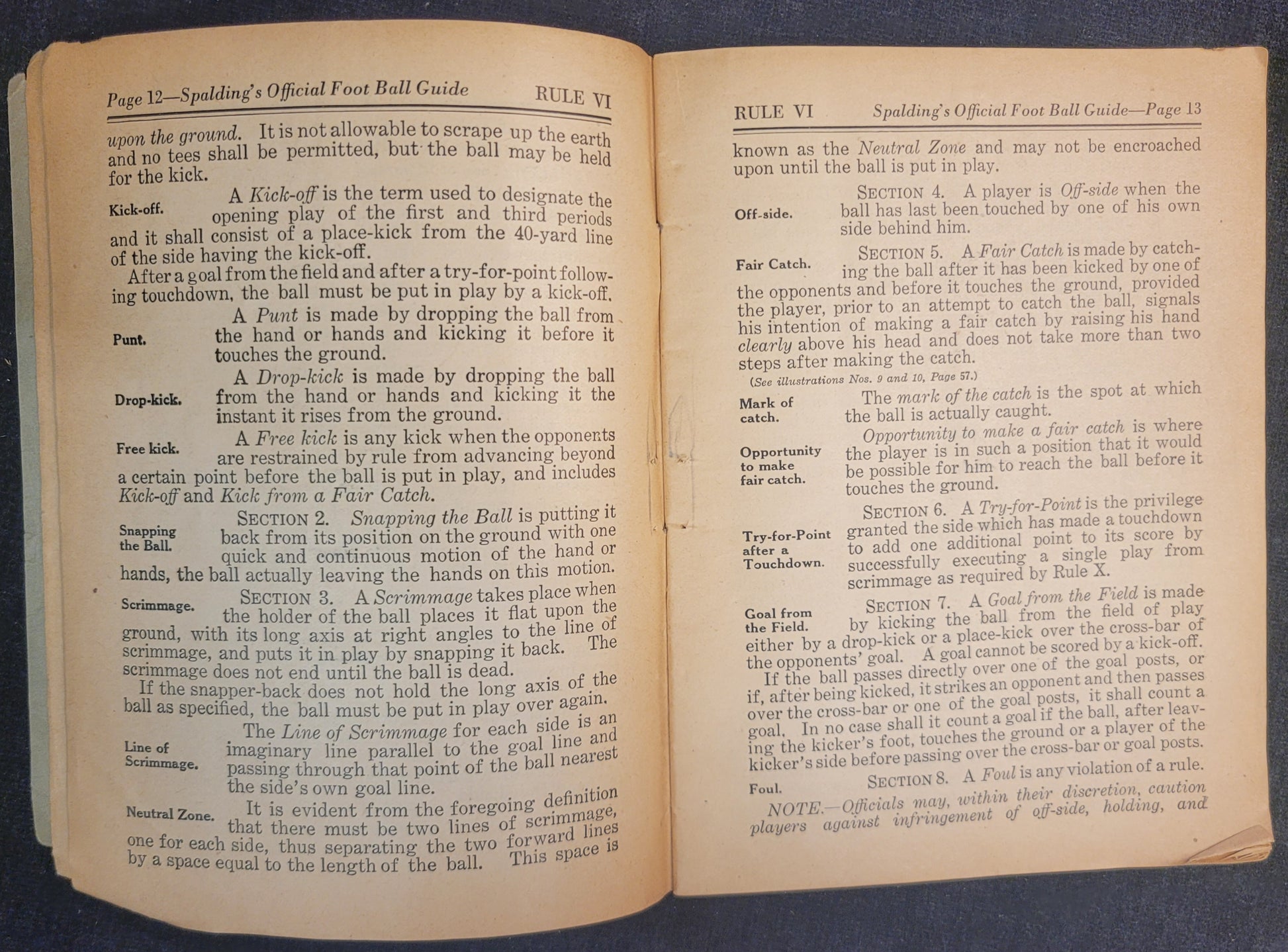 This 1925 edition of Spalding's football rules and guide book is in fairly good condition. There is some tearing and soft corners as well s age related discoloration.