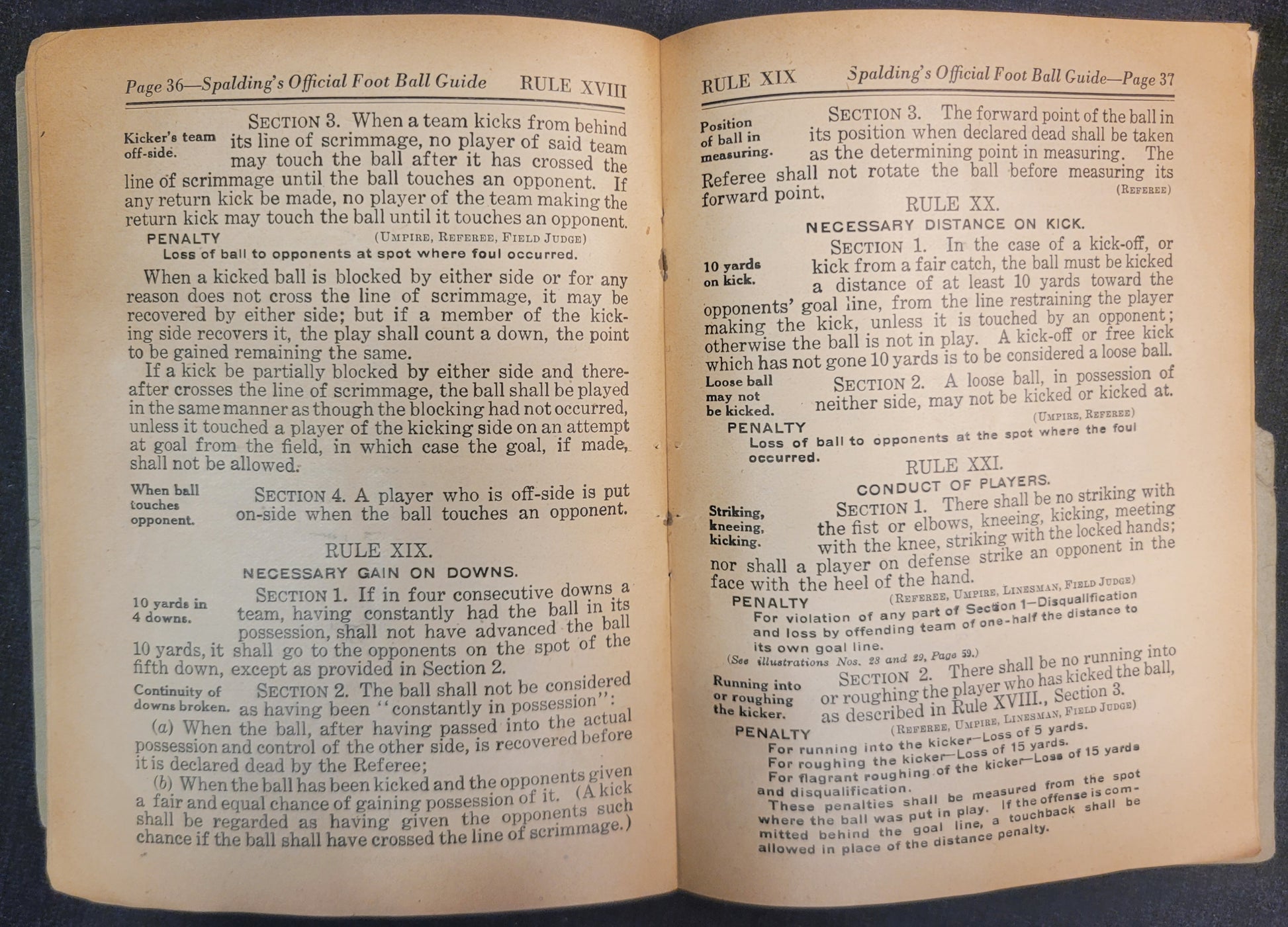 Official Football Rules - Part IV of Spaldings Football Guide - 1925