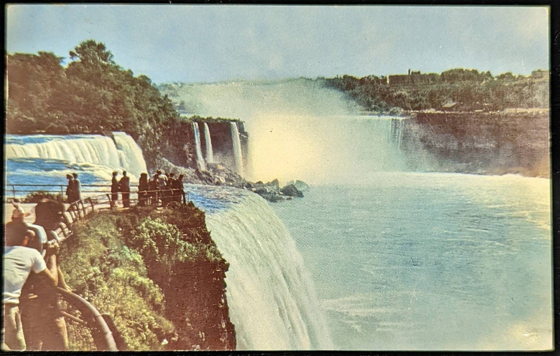 Back Information: The most visited spot at Niagara Falls, New York. American Falls in foreground, Horseshoe Falls in background.