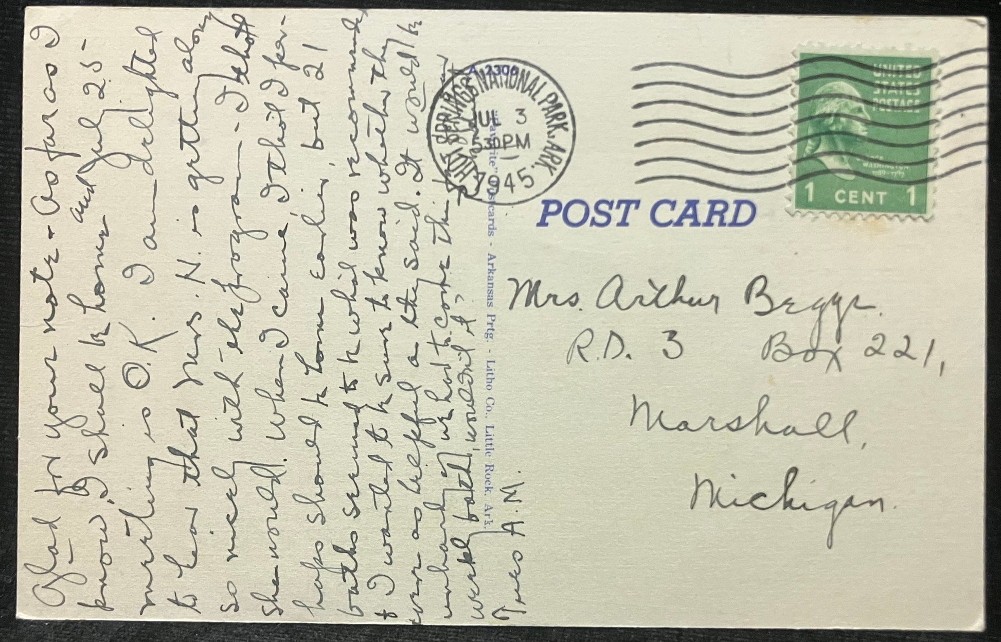 Mailed: Postmark on July 3, 1945 from Hot Springs National Park, Arkansas