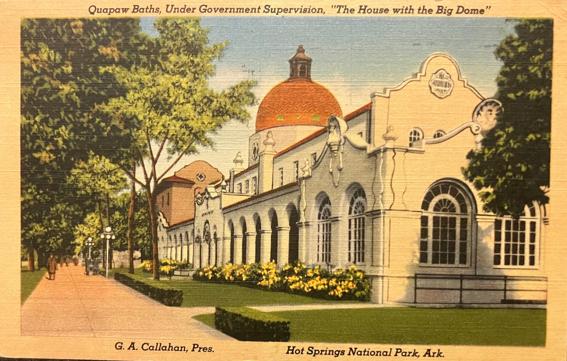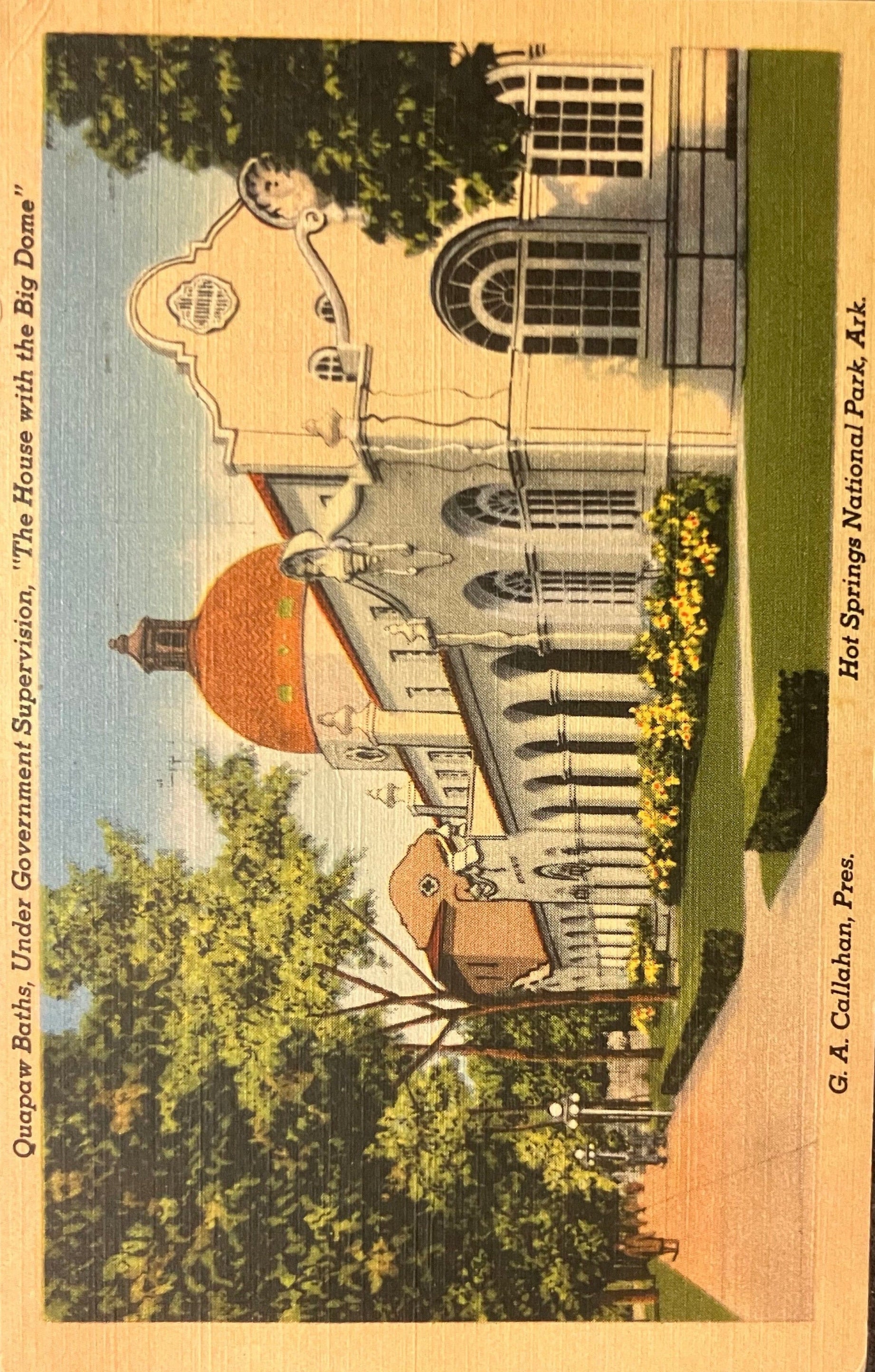 On front: Quapaw Baths, Under Government Supervision, “The House with the Big Dome” | GA Callahan Pres, | Hot Springs National Park Ark.