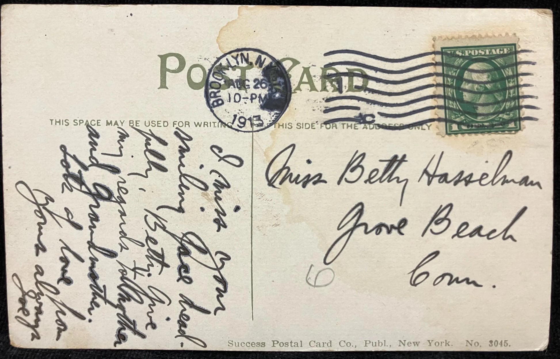 Mailed: Postmark 1913 green one cent George Washington stamp