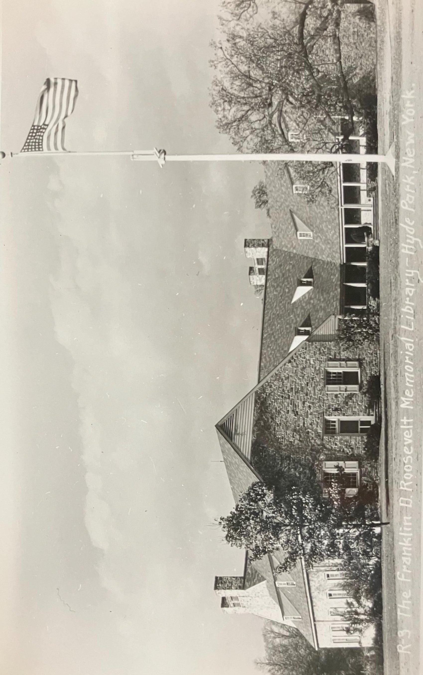 The Franklin D. Roosevelt Memorial Library at Hyde Park in New York. First Presidential Library in the United States. The Design was directed by Roosevelt, it was the beginning of mid century design, which became the rage by 1950. the library was open in 1941.