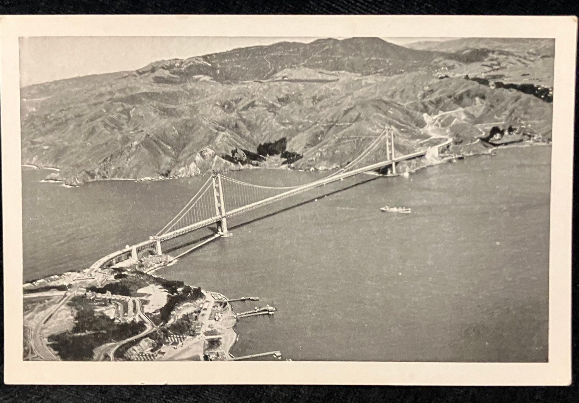RPPC - San Francisco Bay with Golden Gate Bridge - Aerial photo 1937 - Longest Suspension Bridge in World, California