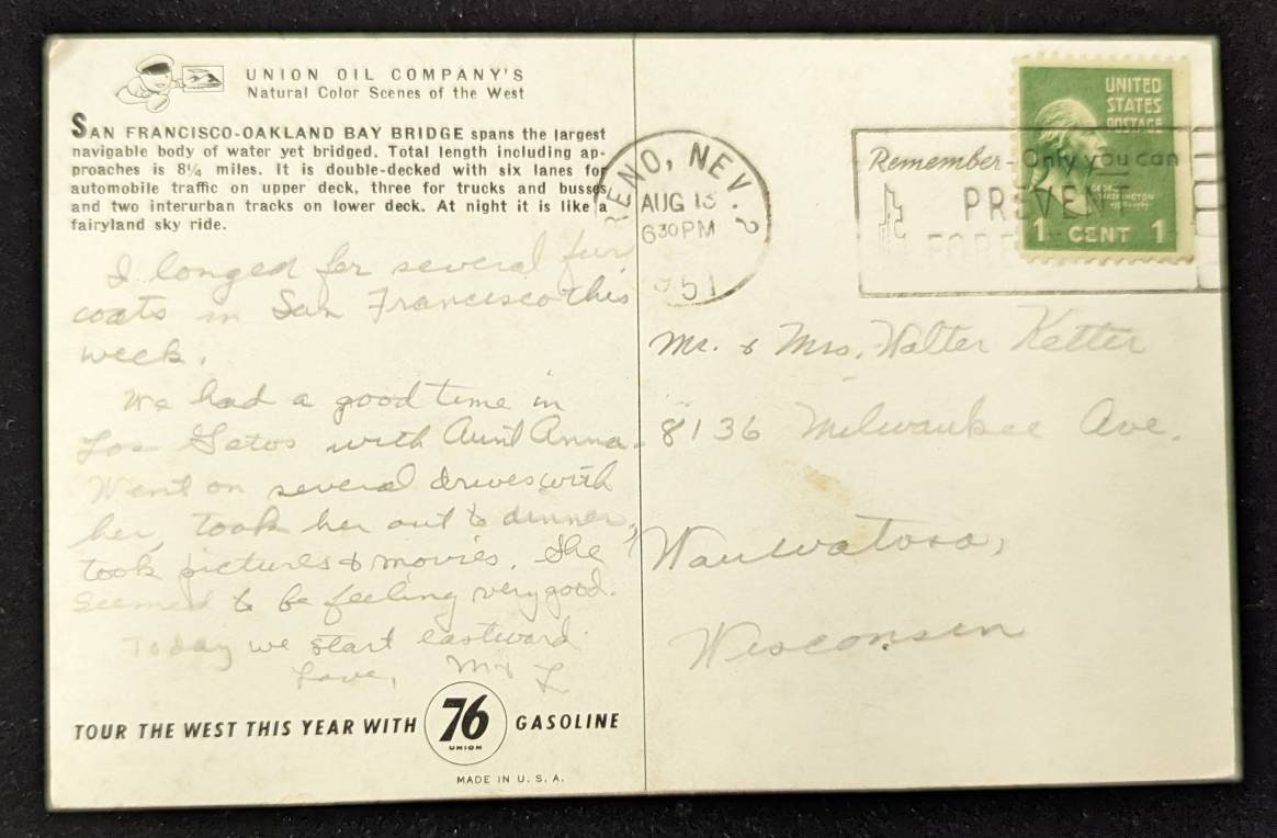 San Francisco - Oakland Bay Bridge, California - Vintage Postcard