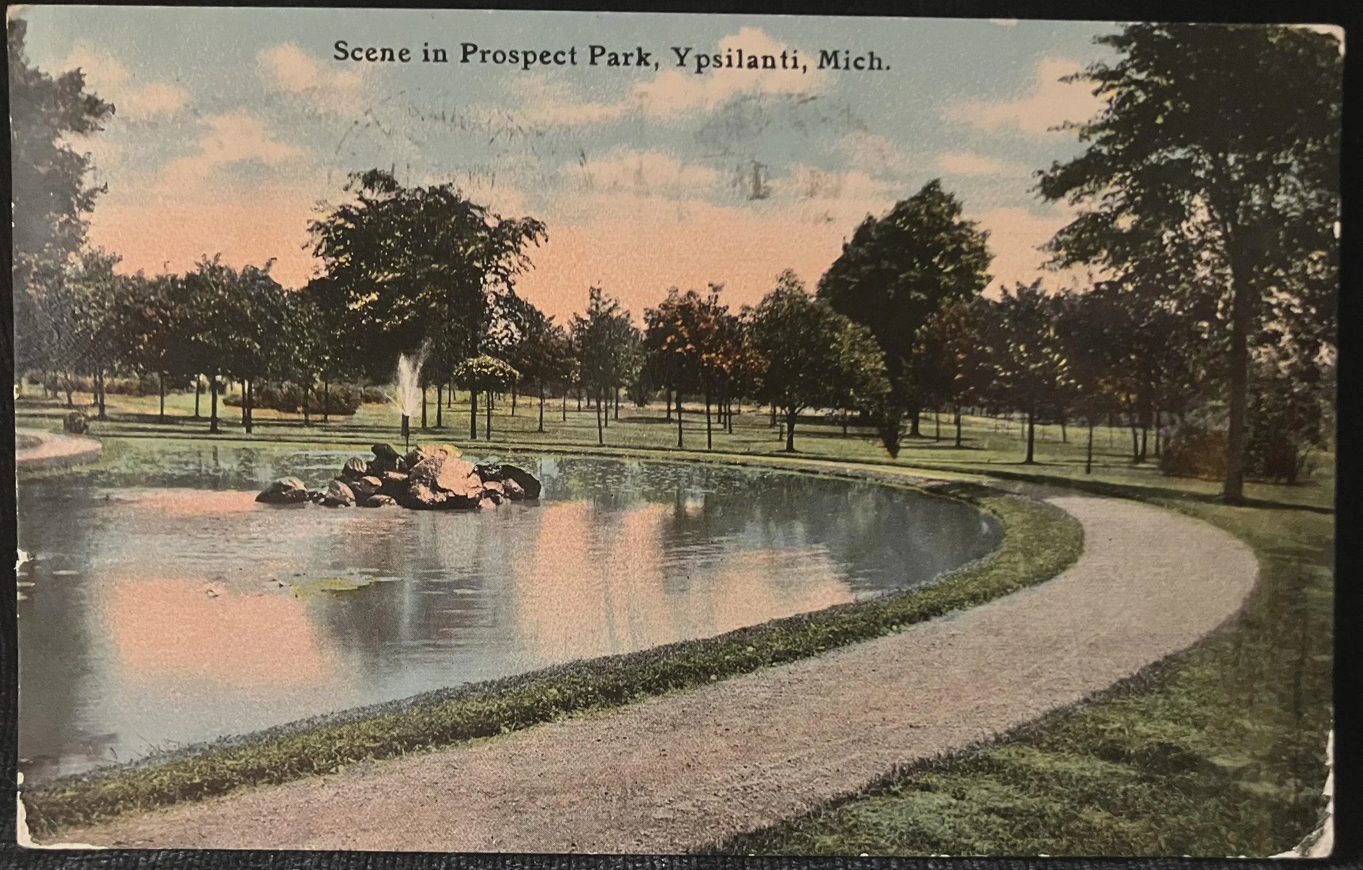 On front: Scene in Prospect Park, Ypsilanti, Mich.
