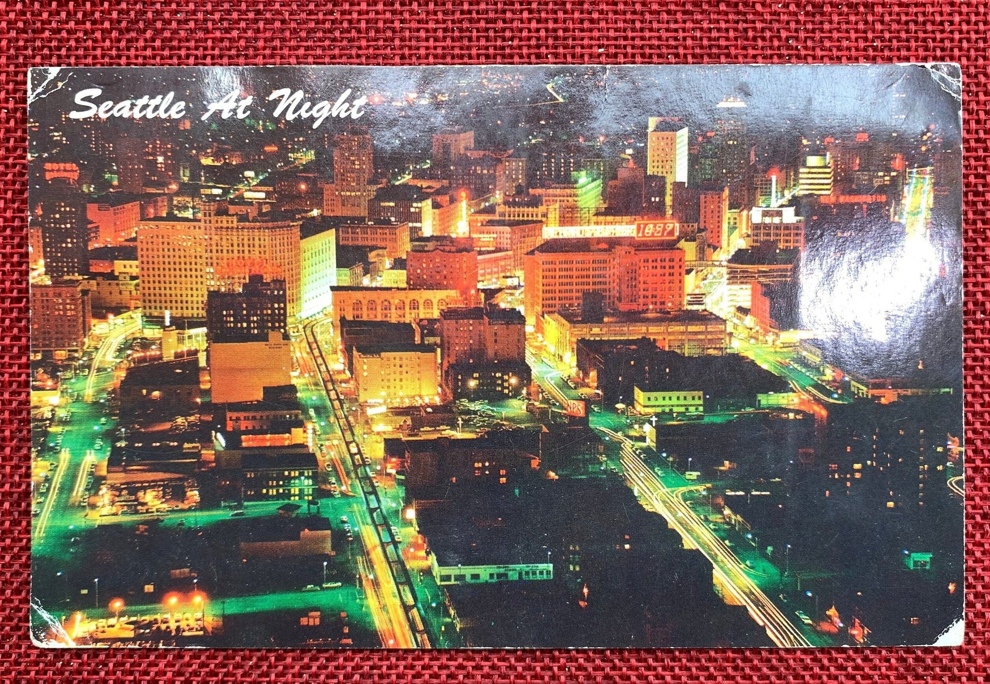 Seattle at Night, Seattle, Washington - Vintage 1950s/1960s Postcard