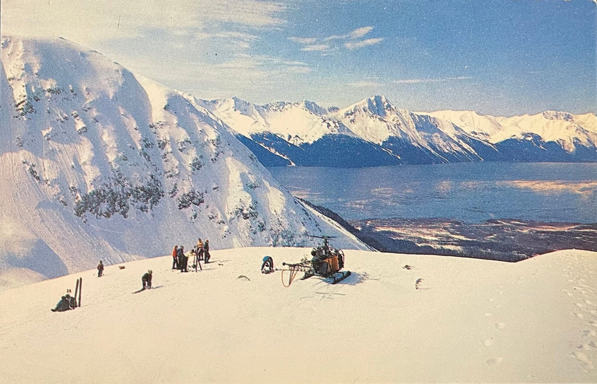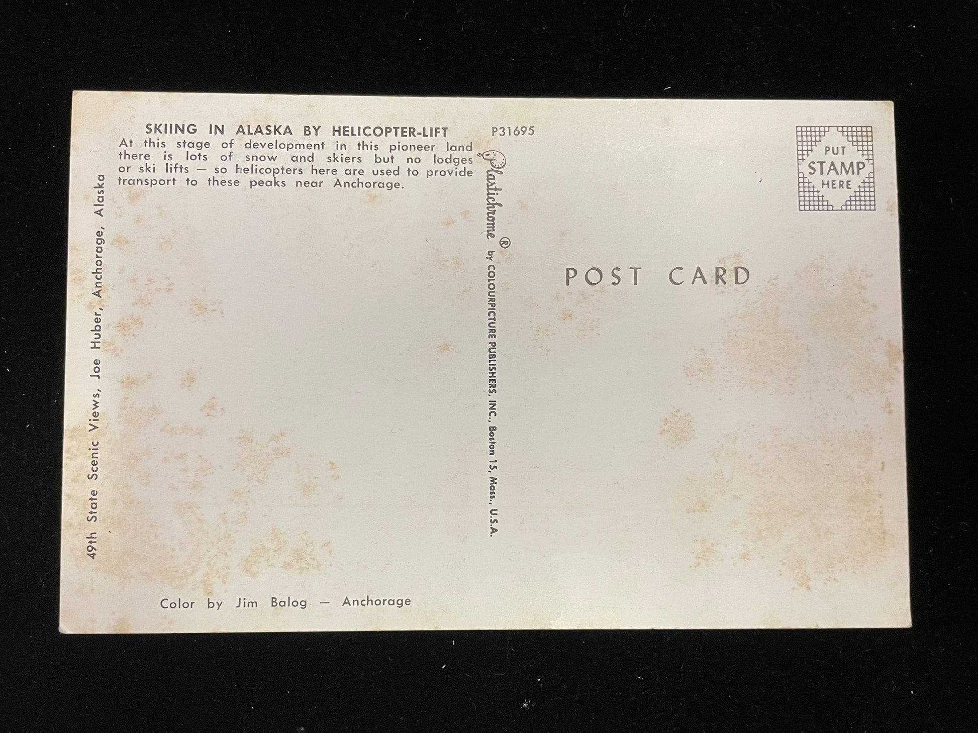 Skiing in Alaska by Helicopter-Lift - 1950s Alaska Postcard