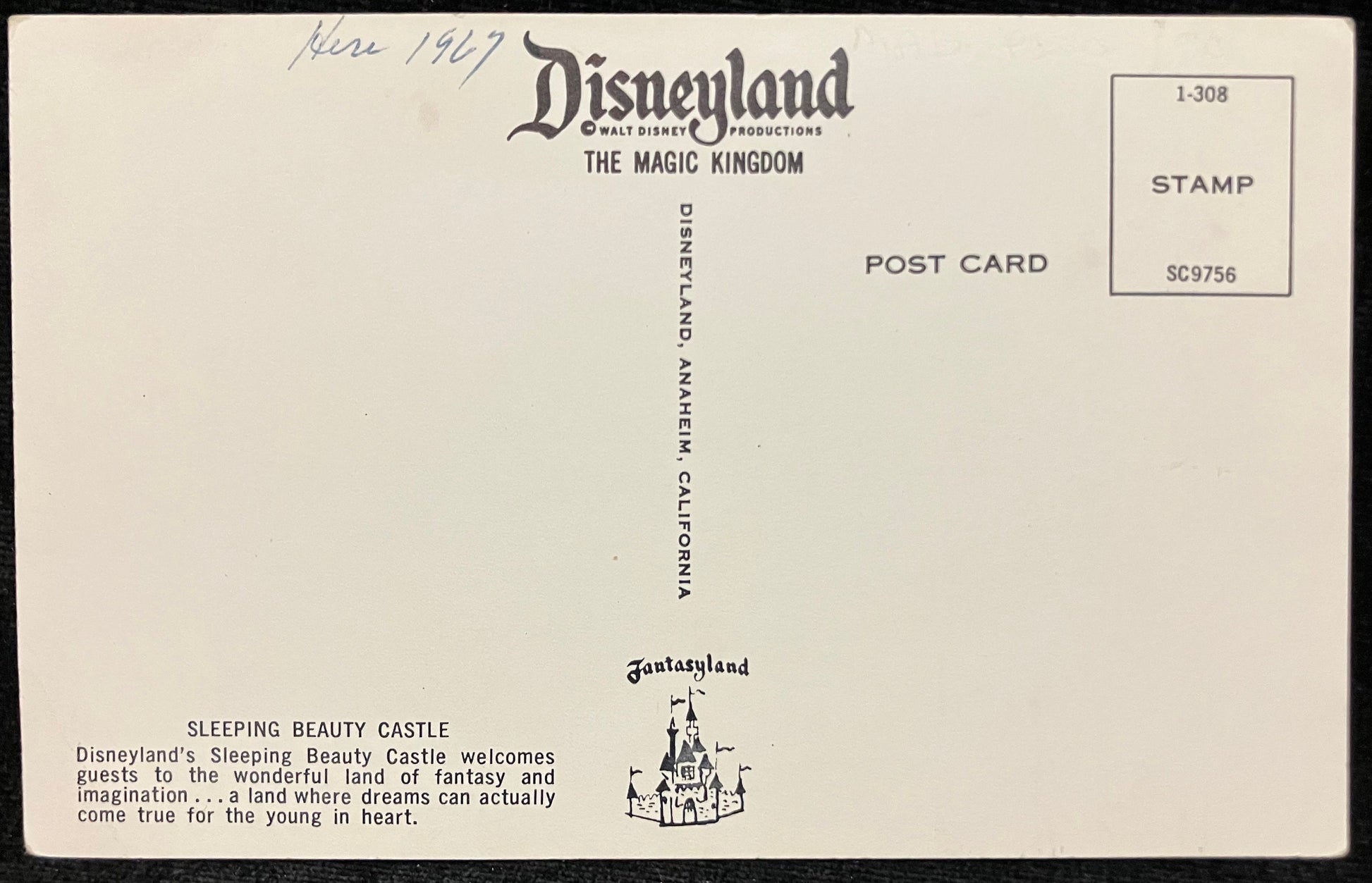 On front: A photo of Sleeping Beauty’s Castle in Disneyland, Anaheim, California