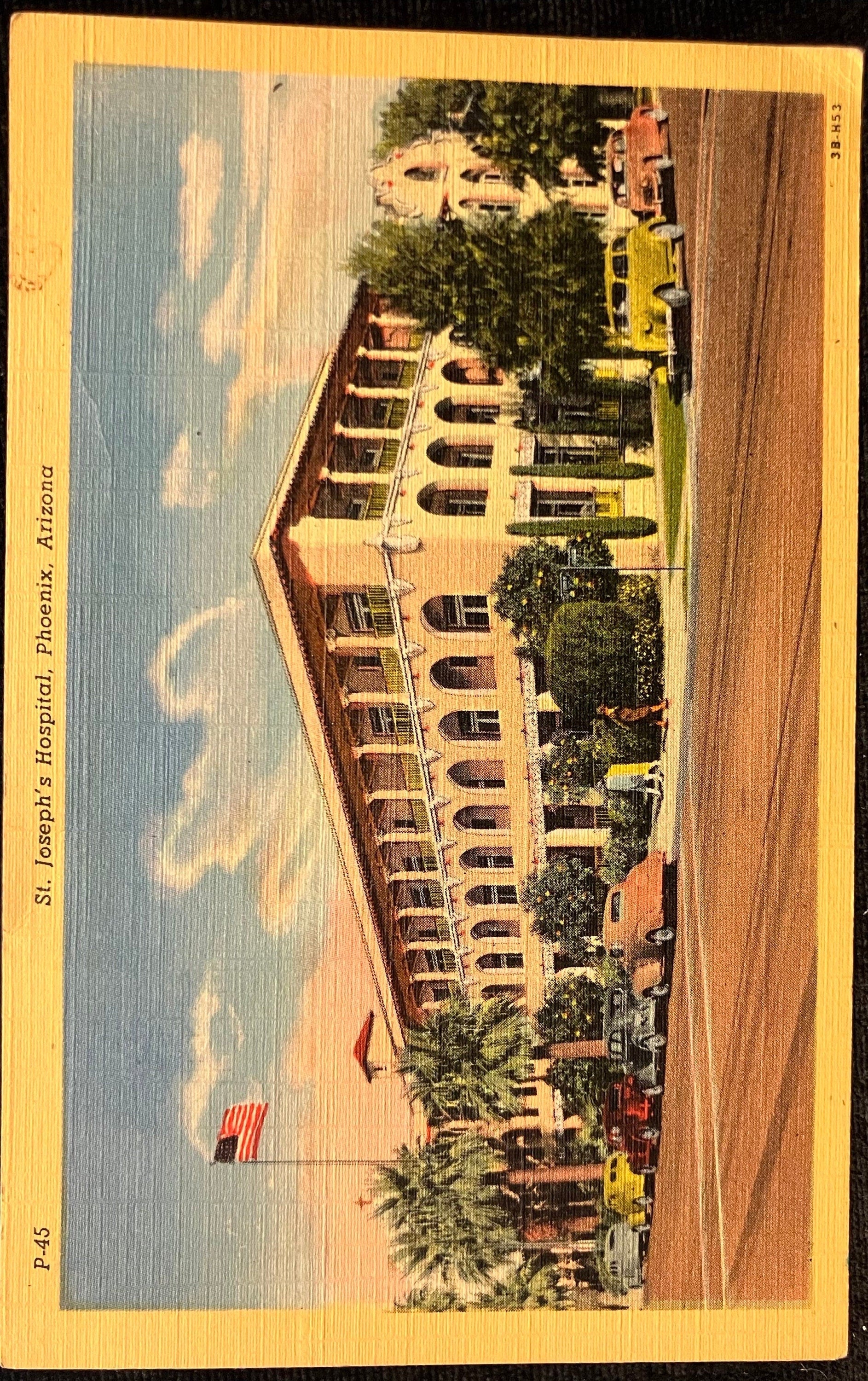 St. Joseph’s Hospital - Phoenix, Arizona - 1950s Vintage Linen Hospital Postcard