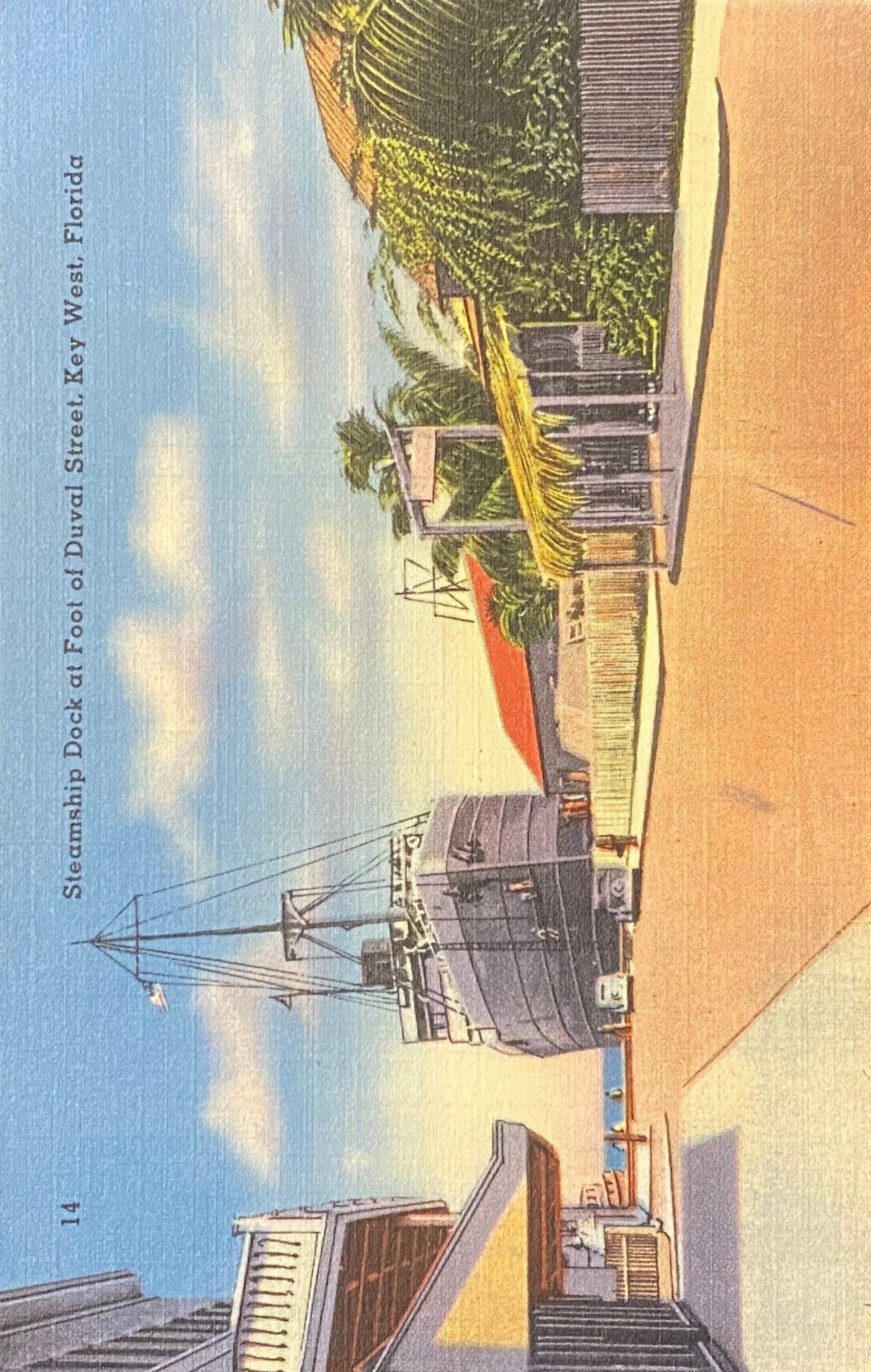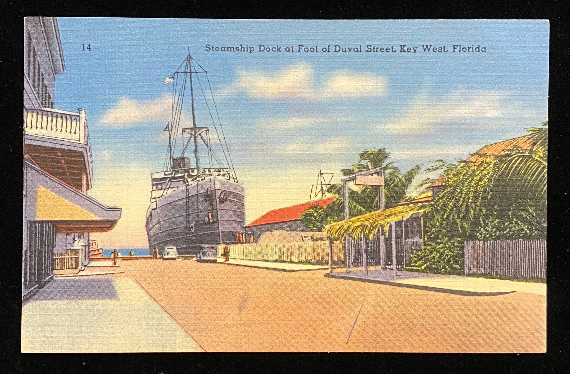Steamship Dock at Foot of Duval Street - Key West, Florida - 1940s Linen Postcard
