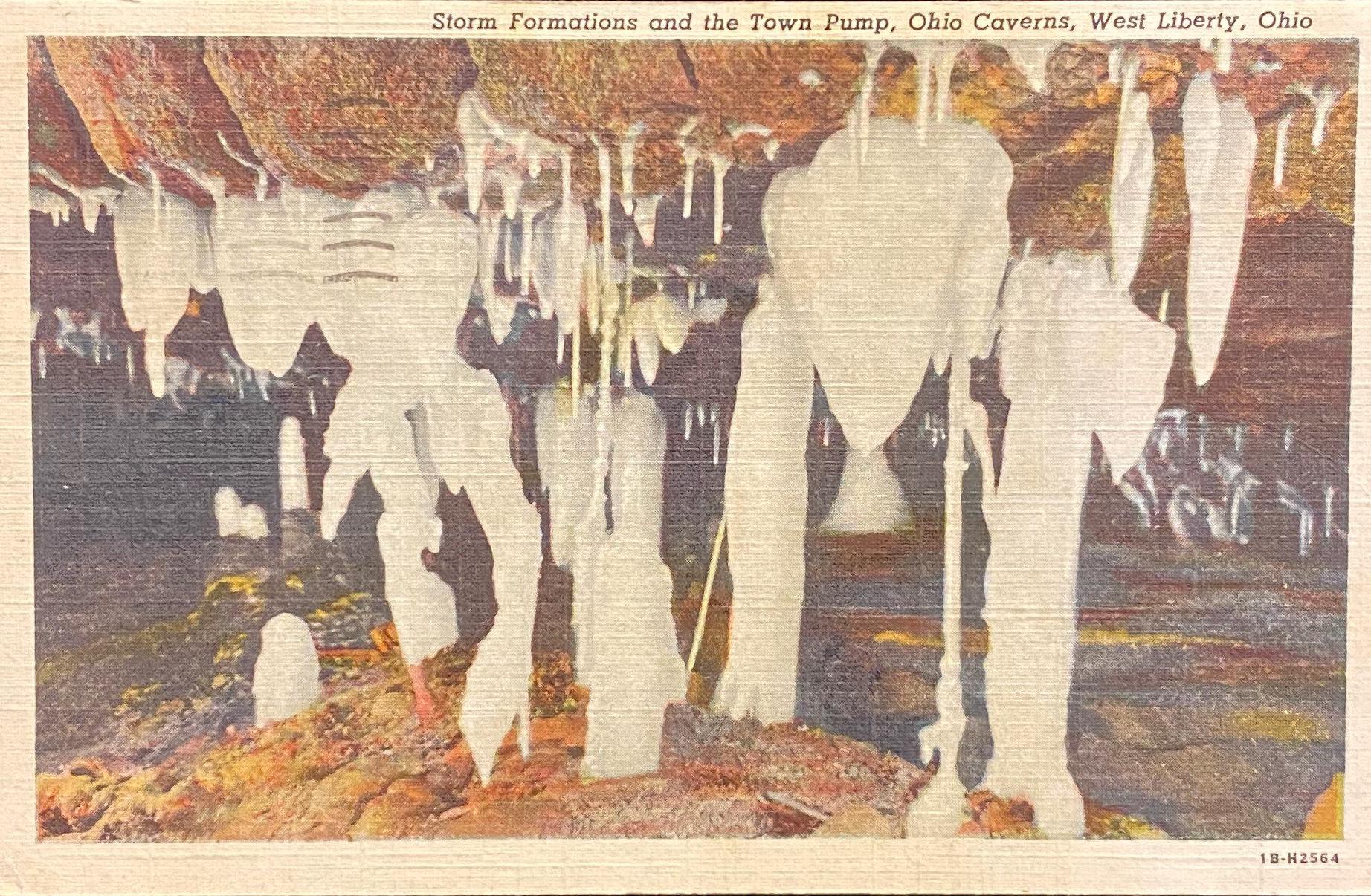 Storm Formations - Town Pump - Ohio Caverns - West Liberty, Ohio - 1940s Linen Postcard