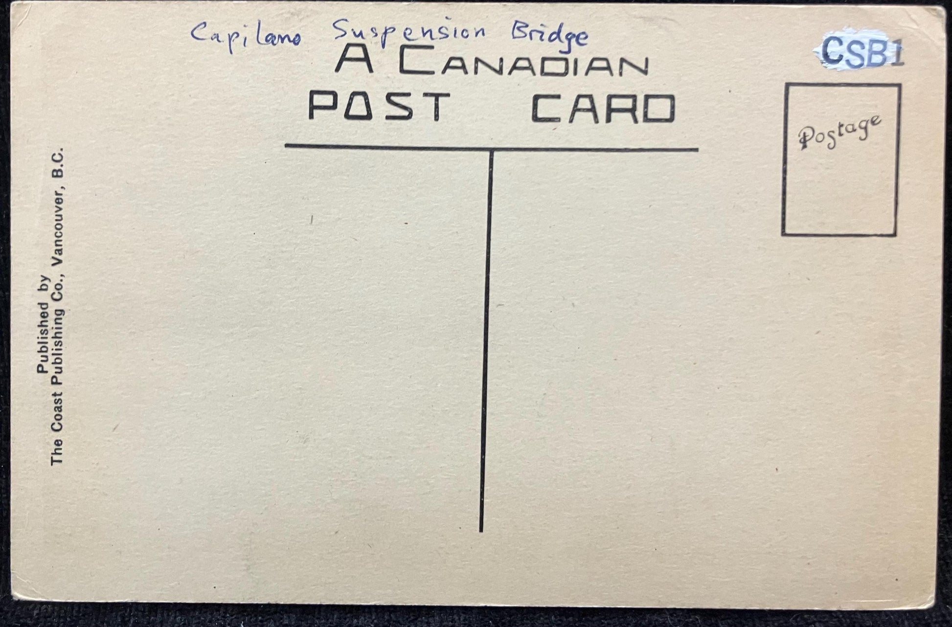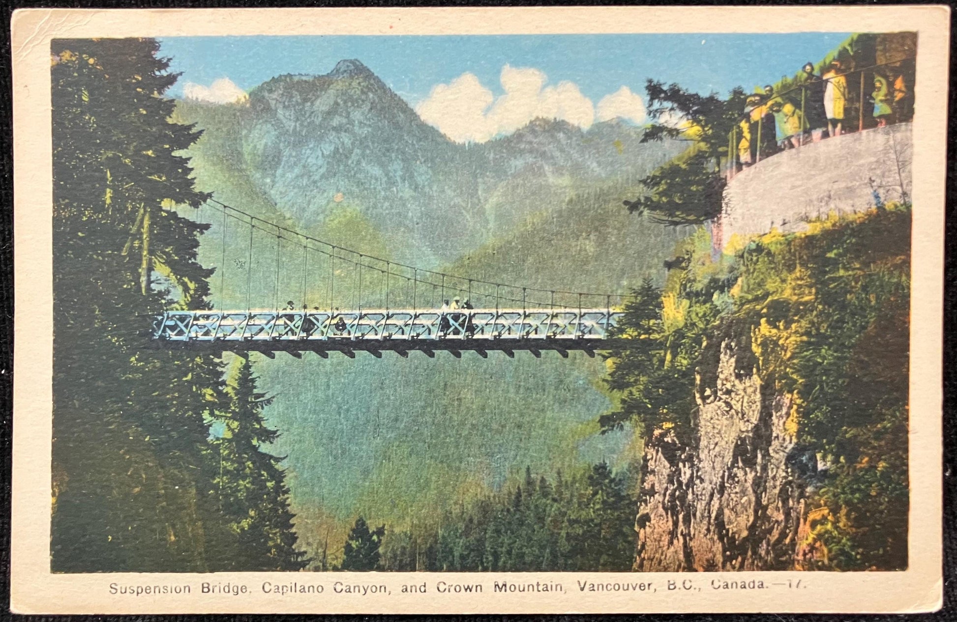 Suspension Bridge - Capilano Canyon - Crown Mountain - Vancouver, B. C., Canada - Made in Canada - 1908 Bridge Postcard