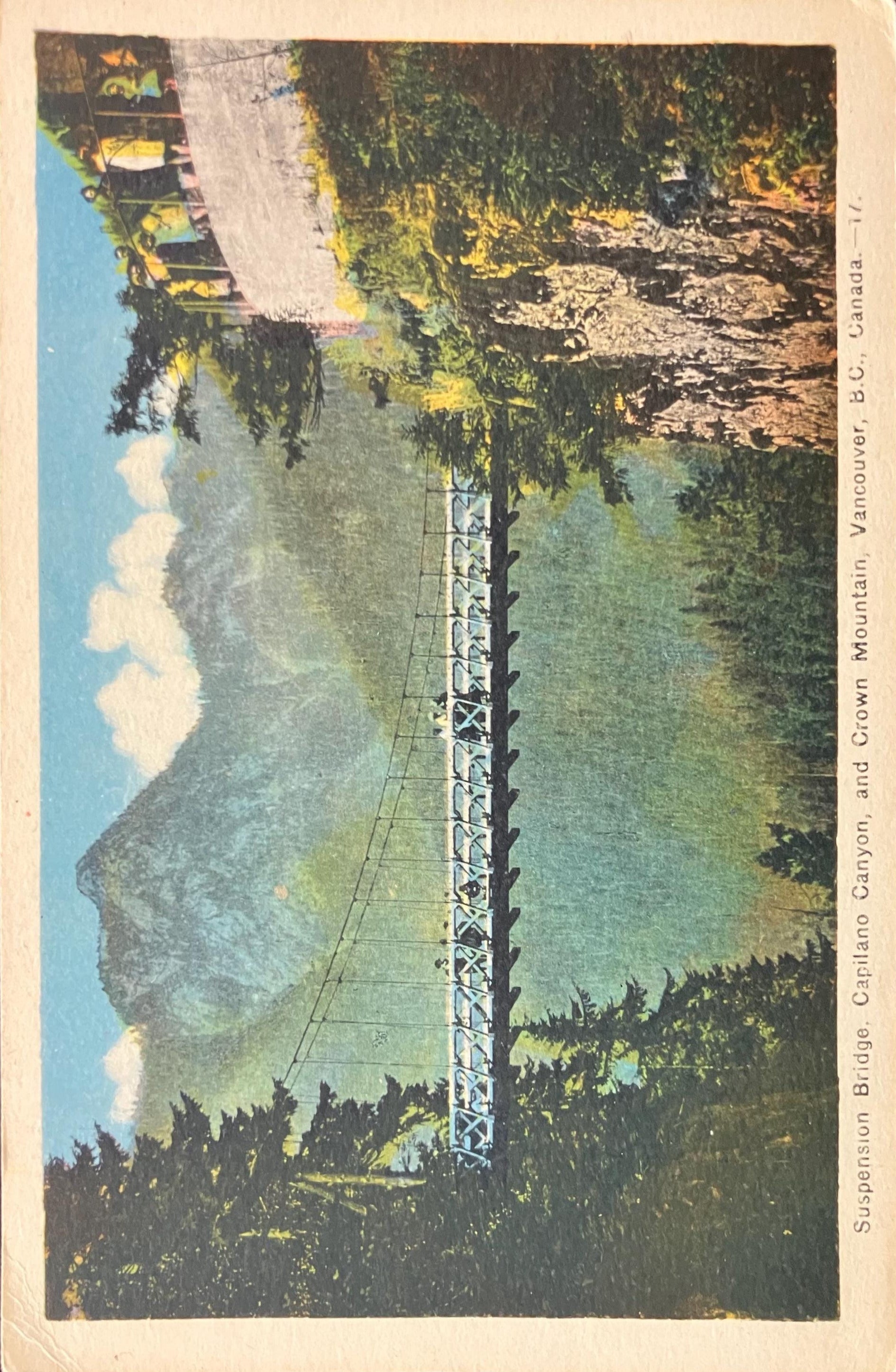 Front: Suspension Bridge, Capilano Canyon, and Crown Mountain, Vancouver, B. C., Canada.