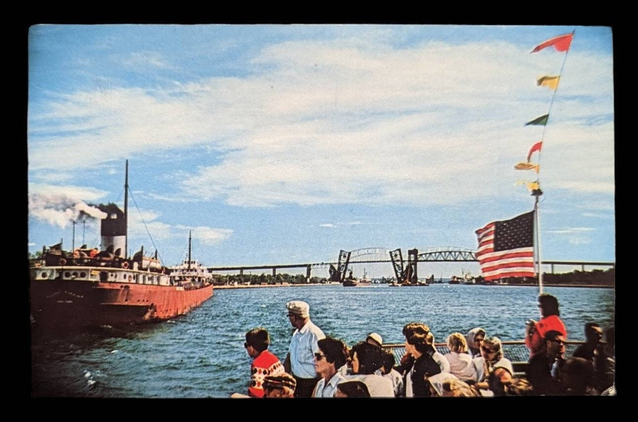 The American Soo Locks - Sault Ste. Marie, Michigan - Vintage Postcard