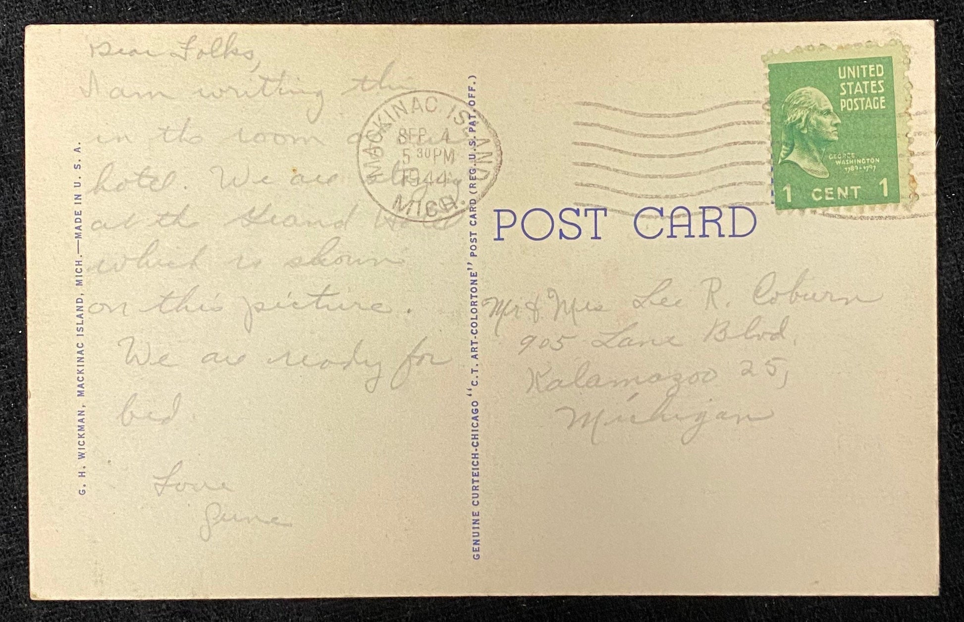 Mailed. Green, 1 cent stamp