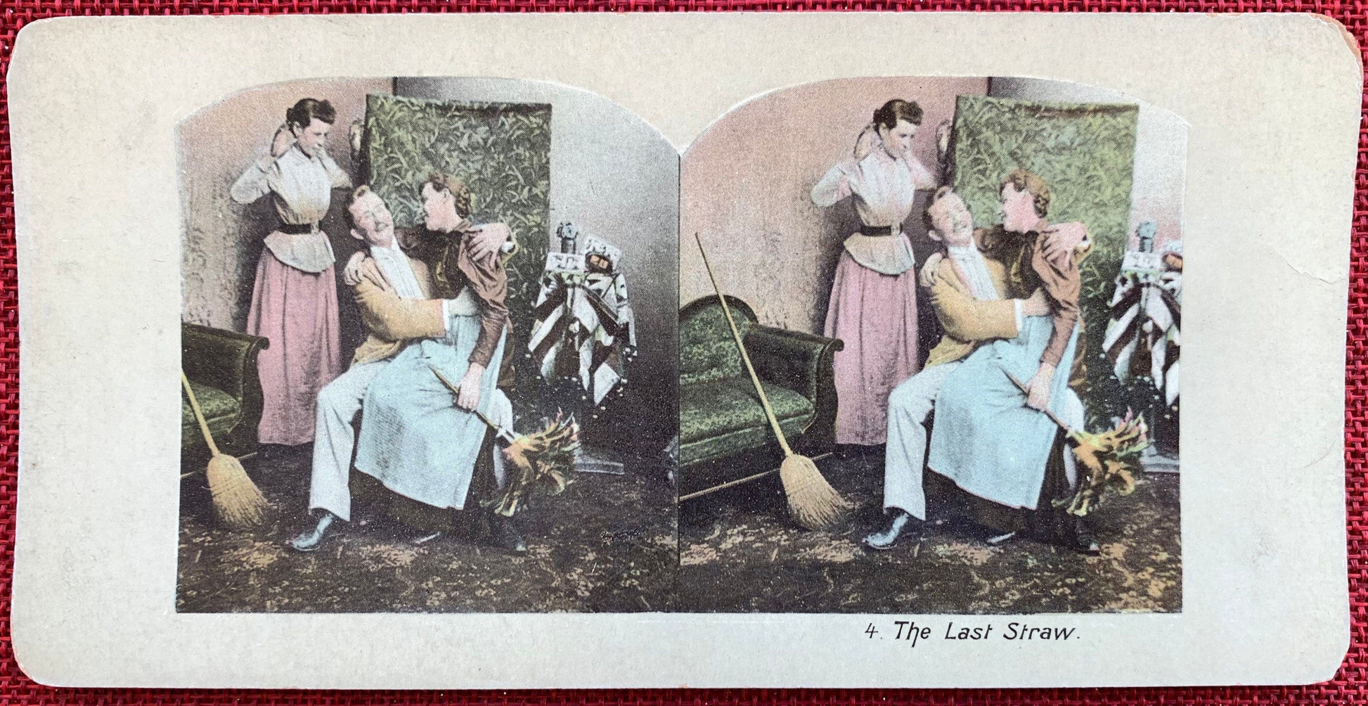 The Last Straw - Vintage Stereo View Card - Late 1800s/Early 1900s - Man With a Woman on His Lap With Another Woman Next to Them