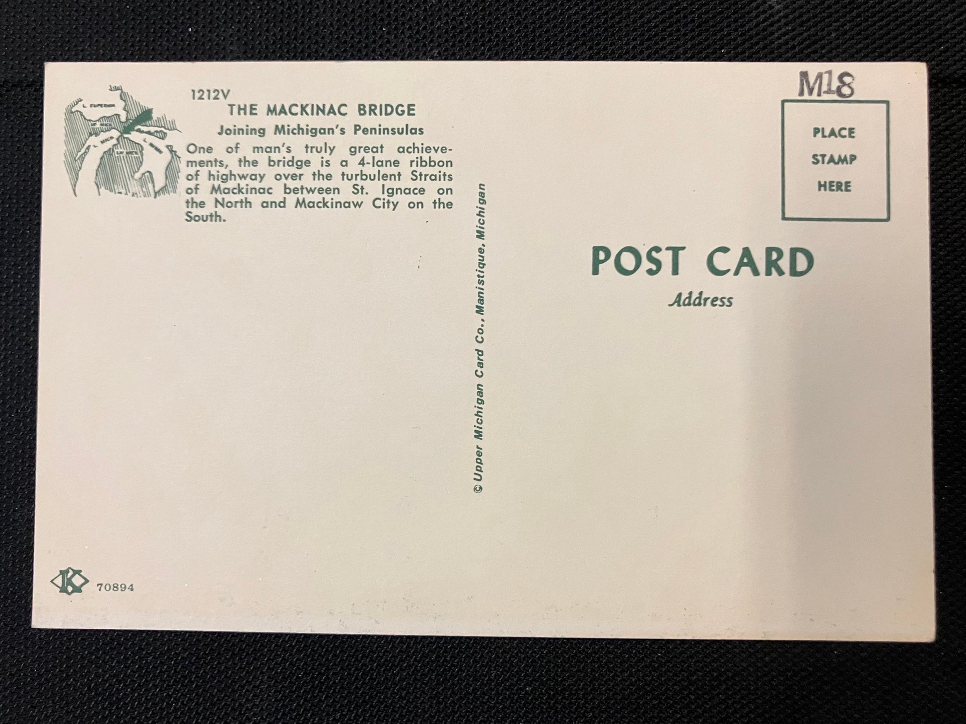 On back: The Mackinac Bridge Joining Michigan’s Peninsulas