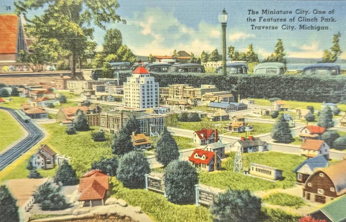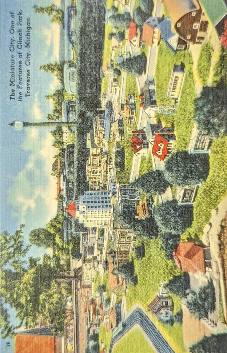The Miniature City - One of the Features of Clinch Park - Traverse City, Michigan - 1940s Linen Postcard