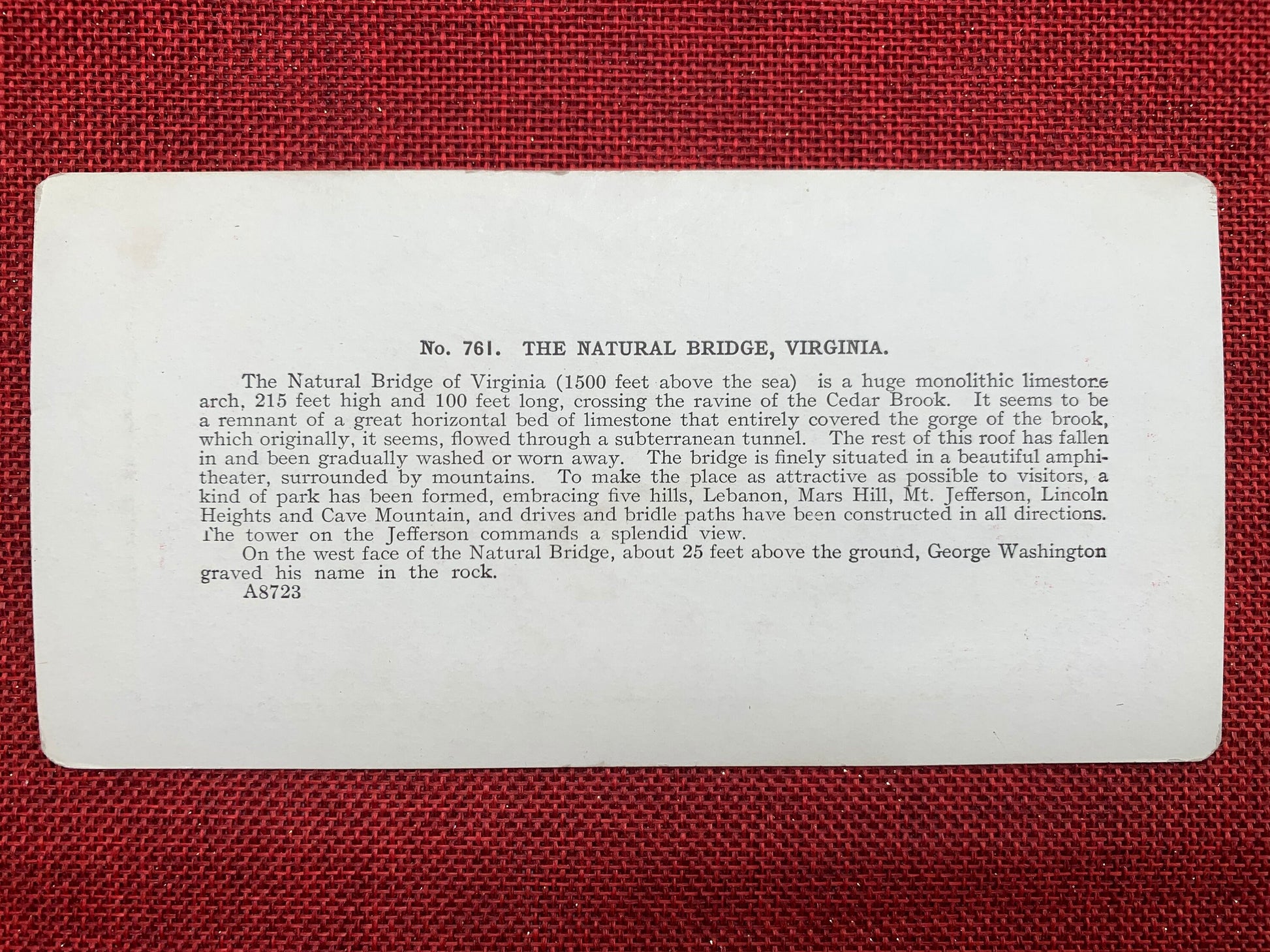 The Natural Bridge, Virginia, Appalachian Mountains Vintage Stereo View Card, Late 1800s