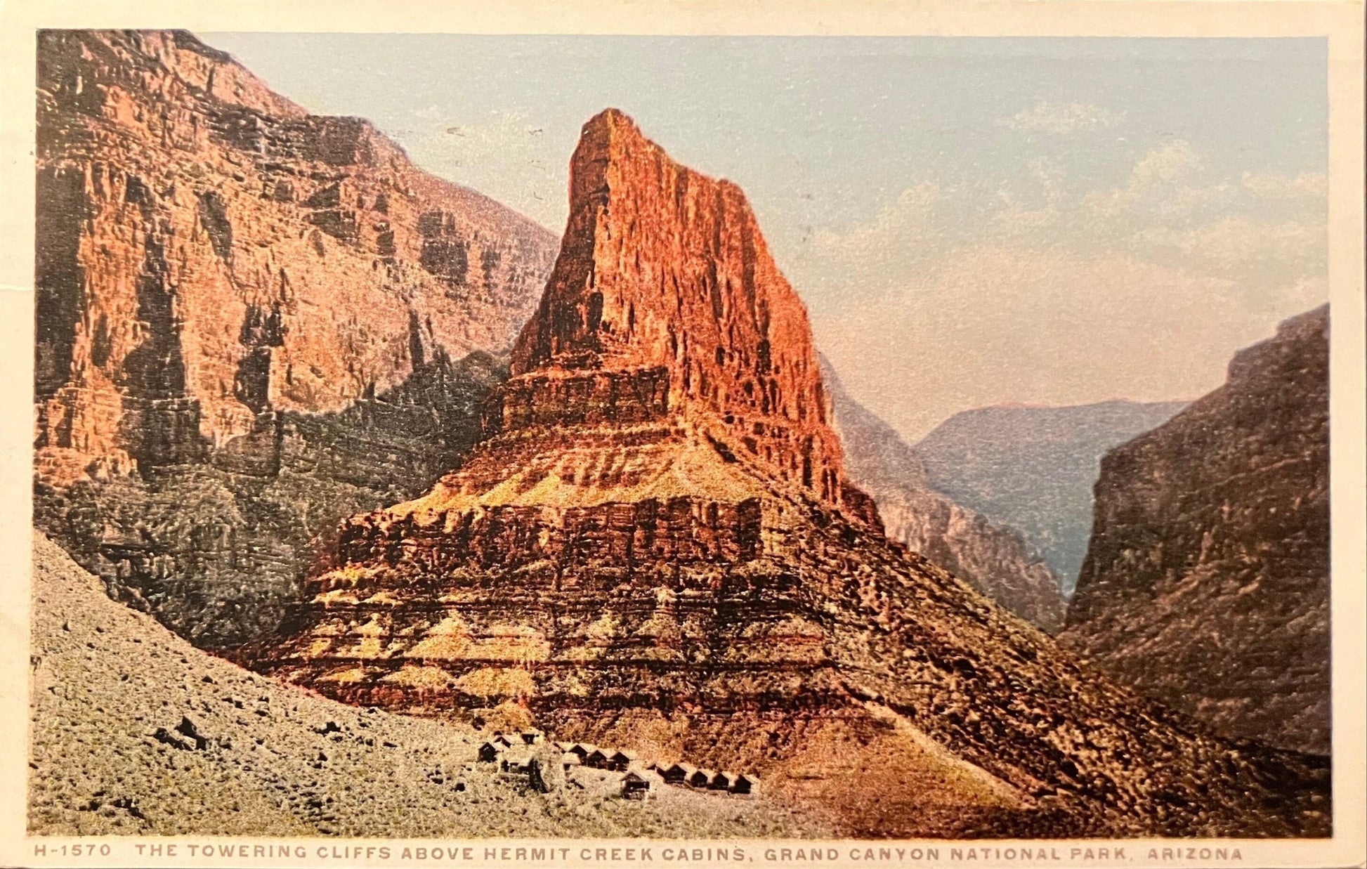 On front: “The Tower Cliffs Above Hermit Creek Cabins, Grand Canyon National Park, Arizona”