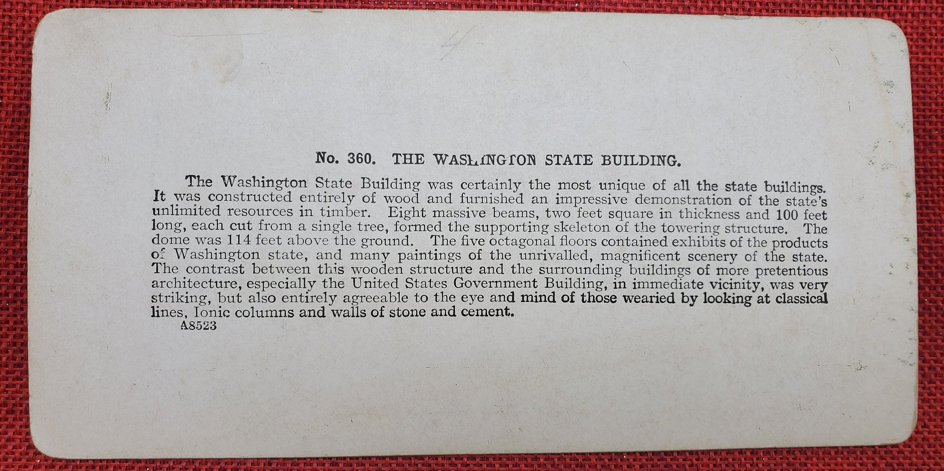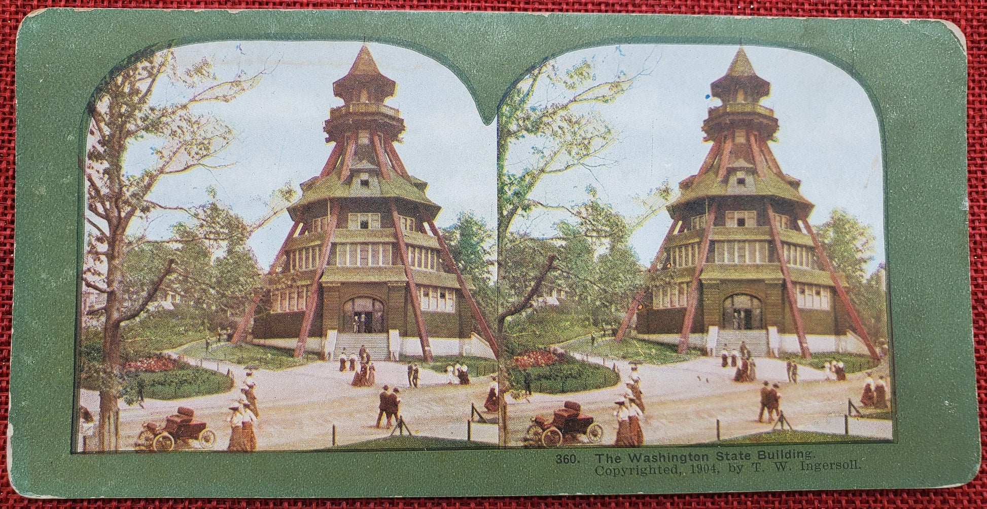 The Washington State Building - St. Louis World's Fair - Vintage 1904 Stereo View Card