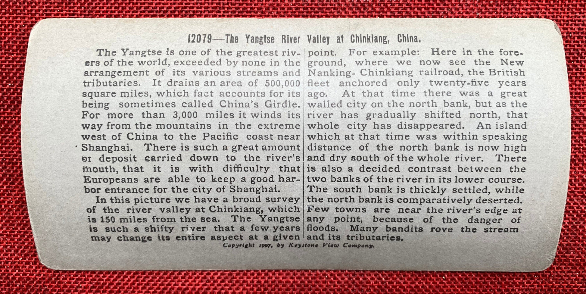 The Yangtze River Valley - Zhenjiang, China - Vintage Stereo View Card - 1907 Keystone View Company