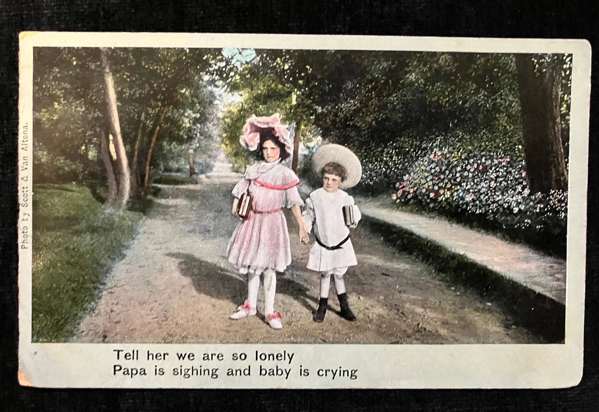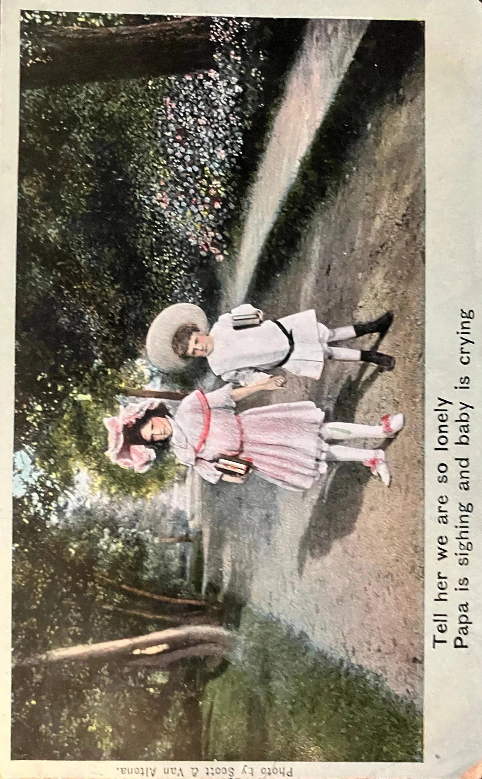 Theodor Eismann - Tell her we are so lonely Papa is sighing and Baby is crying - Vintage Illustrated Song Series - 1907 Hand Tinted Postcard