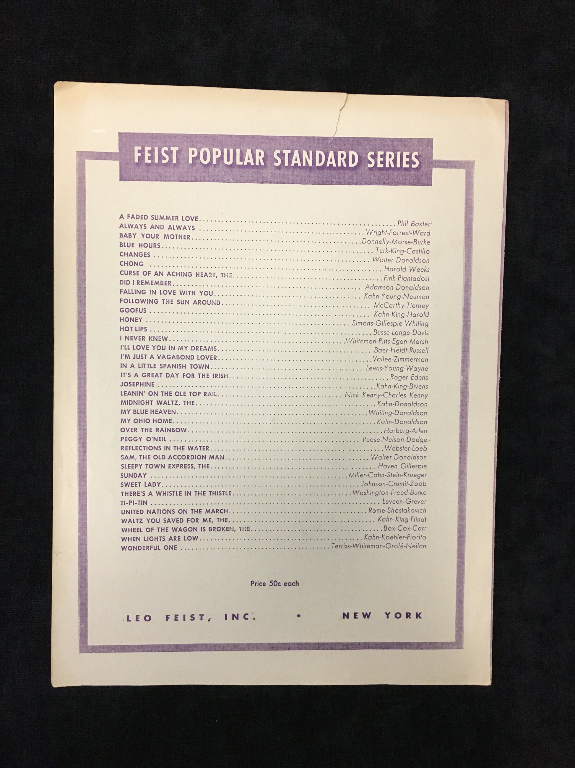 Leo Feist Inc. (New York, NY) published by arrangement with West's Limited (London, England)