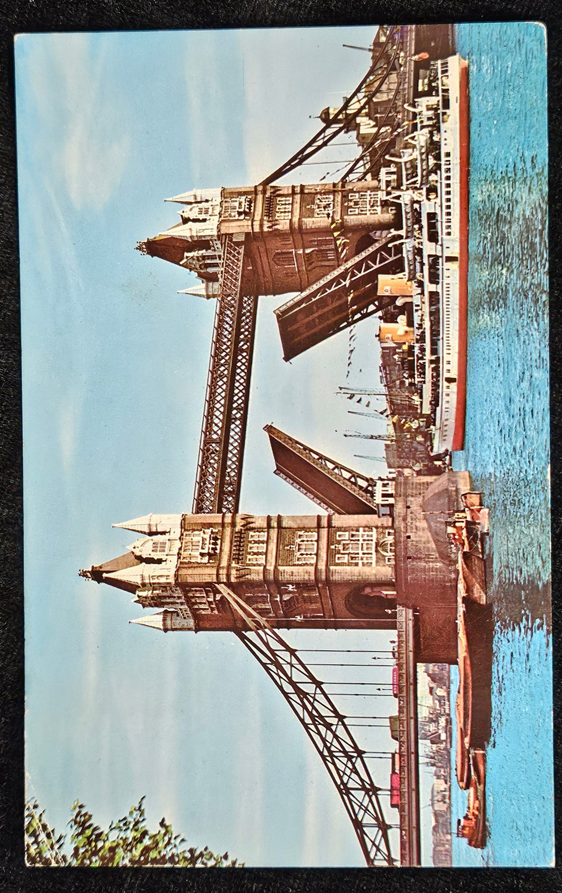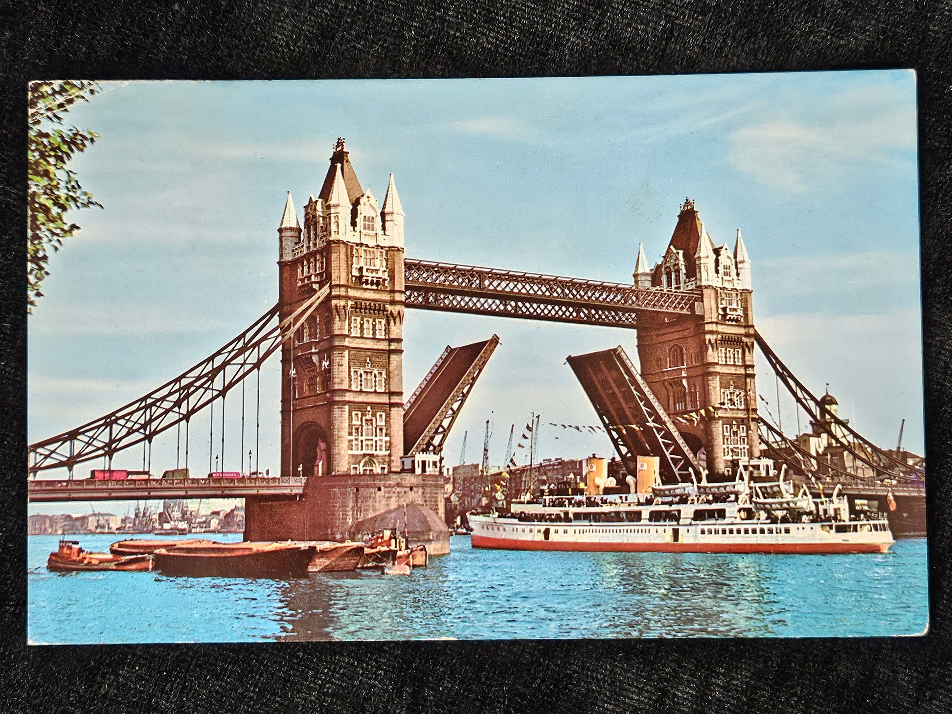 Tower Bridge London Photo Postcard - 1970s view of London Bridge with Boat Commerce below